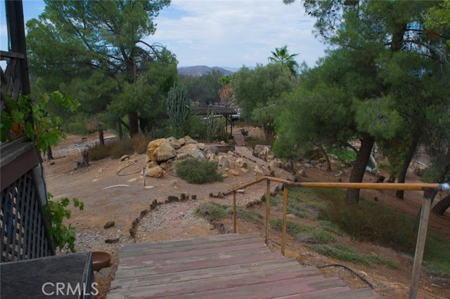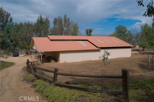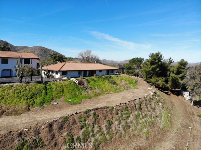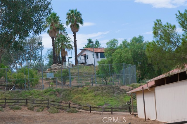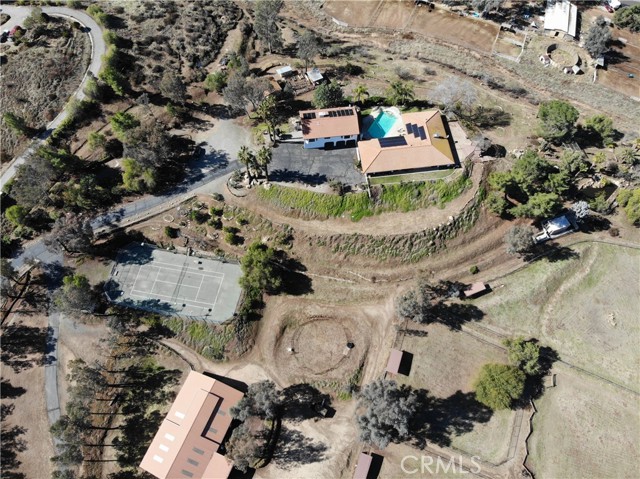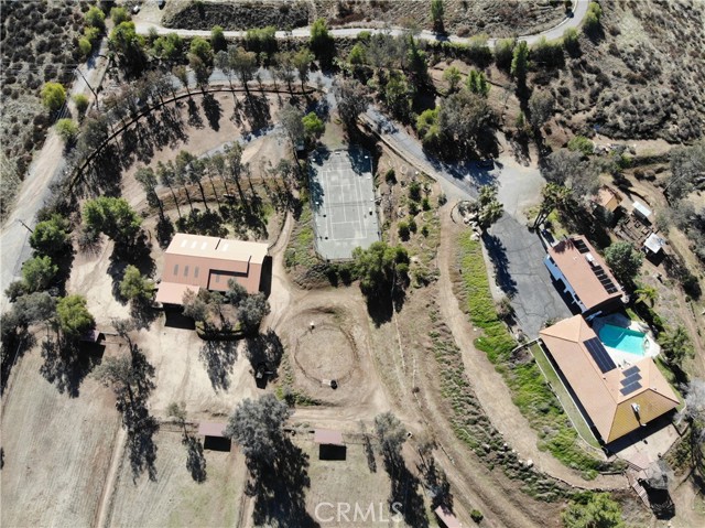 Experience the peaceful allure of modern ranch living in the rolling hills of Hemet. This beautifully updated estate offers 7 bedrooms and 3 bathrooms, sweeping panoramic views that capture the beauty of the surrounding landscape from most of the rooms. Step outside to discover a stunning poolside courtyard, easily accessible through multiple sliding glass doors, creating a seamless indoor-outdoor living experience. The spacious living room features a contemporary stone fireplace—ideal for cozy evenings and relaxed gatherings. The primary suite boasts a private dressing room, dual closets, and breathtaking vistas. In the kitchen, culinary dreams come to life with stainless steel appliances, sleek quartz countertops, and a built-in wet bar, perfect for entertaining. Thoughtful upgrades enhance daily comfort, including a whole-house vacuum system and a generous 3-car garage with extra storage. A covered 2-car carport provides additional parking for guests or larger households. For extended family, guests, or rental potential, a detached 2-bedroom, 2-bath guest house offers its own entrance, balcony, and scenic views of the pool and surrounding mountains. Outdoors, the property is an equestrian’s dream, featuring paddocks, a training round pen, and a large barn with 4 stalls and ample storage. Additional amenities include a lighted tennis court, RV pad with full hookups, storage shed, chicken coop, dog run, and a spacious deck with a gazebo for entertaining or unwinding in nature. The home is powered by fully paid-off solar panels, combining sustainability with modern convenience. Recently painted and secured by remote or key-controlled gated access, this exceptional property delivers the perfect balance of luxury, privacy, and functionality.