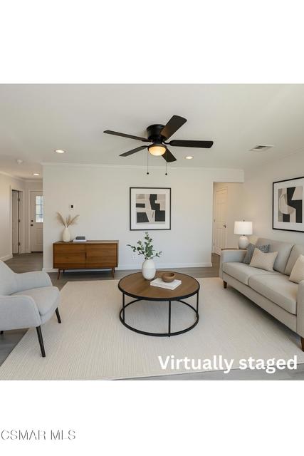 Say hello to 1449 Calle Durazno--a fully remodeled, single-story charmer tucked into a quiet Thousand Oaks neighborhood. With 3 bedrooms, 1.75 bathrooms, and nearly 1,000 sq ft of light-filled living space, this home checks all the boxes--and then some!Brand new vinyl plank flooring, fresh interior and exterior paint, recessed lighting, crown molding, and sleek panel doors. You'll love the upgraded dual-pane windows that let in just the right amount of natural light while maintaining energy efficiency. And did we mention the brand-new HVAC system and ducting? Comfort: check!The kitchen is dreamy, with refinished white cabinetry, sparkling granite, marble-look counters, stainless steel appliances (yes, even the hood!), subway tile backsplash, a brand-new sink, faucet, and garbage disposal. It's the kind of kitchen that actually makes you want to cook!Both bathrooms have been reimagined--one with a tub/shower combo and elegant marble-look tile, and the other with a fresh corner shower and stylish new vanities, toilets, and fixtures. Each bedroom has its own ceiling fan (including the living room), making this home cool in every sense of the word.But wait--there's more! The large, flat 9,583 sq ft lot offers RV access via gated side yard and endless potential: think ADU, pool, garden, or even a detached garage. The newly landscaped front yard with lush sod, a sprinkler system, and a drip irrigation setup makes a great first impression. Even the main sewer line out front was replaced--because peace of mind matters.Top it all off with a spacious 2-car garage, no HOA, and a location that puts you close to everything Thousand Oaks has to offer: award-winning Conejo Valley schools, hiking and biking trails, parks, the Civic Arts Plaza, library, equestrian center, and The Oaks Mall.Whether you're a first-time buyer, savvy investor, or someone simply looking for a home with modern comforts and future potential--this one is a must-see.