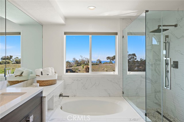 Situated on a 7,100 sq ft lot in the desirable Coast District of San Clemente, this home offers ocean views from both levels and epitomizes coastal living. The location balances lifestyle and convenience, less than two and a half miles from the beach, pier, and world-class surfing, just over a mile from San Clemente High School, and only seven minutes to the shops and restaurants along Del Mar Street. Upon arrival, the home’s fresh exterior upgrades, including a new roof, windows, vinyl fencing, and HVAC system, set a refined tone. Inside, light-filled living spaces flow seamlessly, highlighted by an upgraded kitchen with soft-close cabinetry and a fully remodeled primary suite featuring a spa-inspired bathroom with dual sinks, soaking tub, and walk-in shower. Ocean views from the kitchen, primary suite, and secondary bedrooms make daily living here truly special. Designed for entertaining, the backyard invites with a heated pool, built-in grill, above-ground and built-in spas, and upgraded pool equipment, all framed by coastal breezes and golden skies. A full bathroom downstairs enhances functionality for guests and indoor-outdoor living, while an upgraded ADT security system with cameras ensures peace of mind. Upstairs, the expansive primary suite commands the most dramatic views, complete with vaulted ceilings and a gas fireplace. Notable details include a family-friendly neighborhood setting within the Coast District, proximity to award-winning schools, and easy access to hiking trails, parks, and local amenities. Central to all that San Clemente and Dana Point have to offer, from historic downtown to the iconic San Clemente beach trail, this home presents an ideal opportunity to enjoy the Southern California lifestyle at its finest.