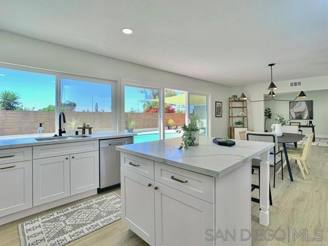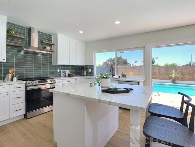 Modern comfort meets California living in this beautifully updated San Carlos home, where soaring ceilings, natural light, and a resort-style backyard come together seamlessly. A dramatic vaulted entry opens to an airy floor plan with a renovated kitchen and baths featuring quartz countertops, custom cabinetry, and stainless appliances. Updated vinyl plank flooring, dual-pane windows, new AC and Nest thermostat add modern comfort throughout. Over $30k of recent upgrades include a backyard turf dog run, new front yard turf and hardscape, and a completely refinished 3-car garage with added attic storage and epoxy floors. The backyard is a true oasis with a refinished pool and scenic views. Offering 4 bedrooms and 3 bathrooms across 2,606 sq ft—with flexible main-level space for a potential 5th bedroom—this home is perfectly situated near La Mesita Park, YMCA, Parkway Middle, Lake Murray, Cowles Mountain, Mission Trails Golf Course, shopping, dining and freeway access. Move-in ready in one of San Carlos’s most desirable neighborhoods!