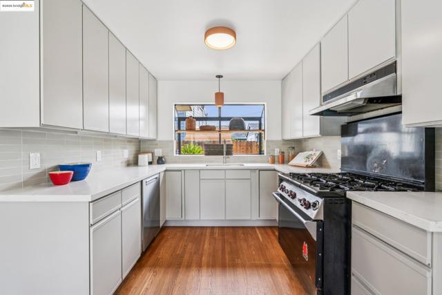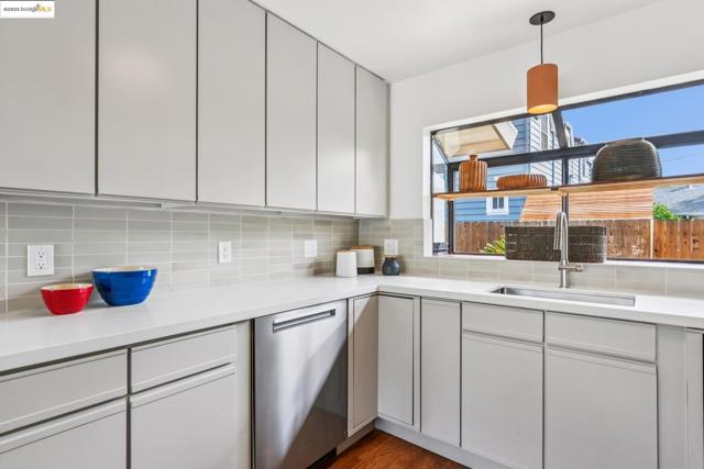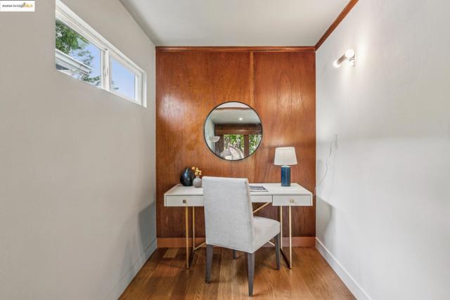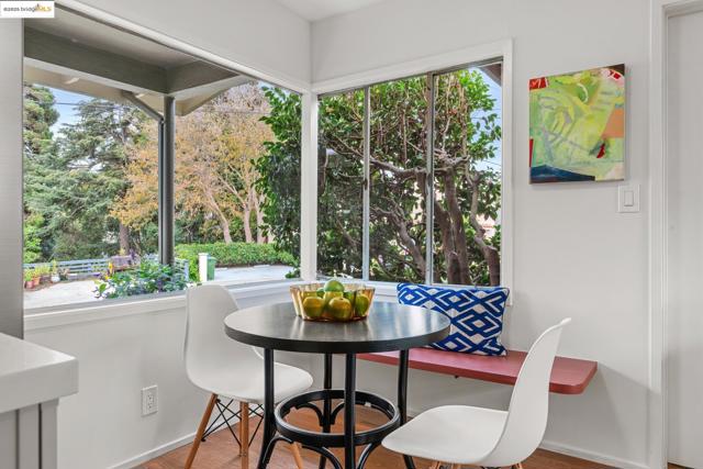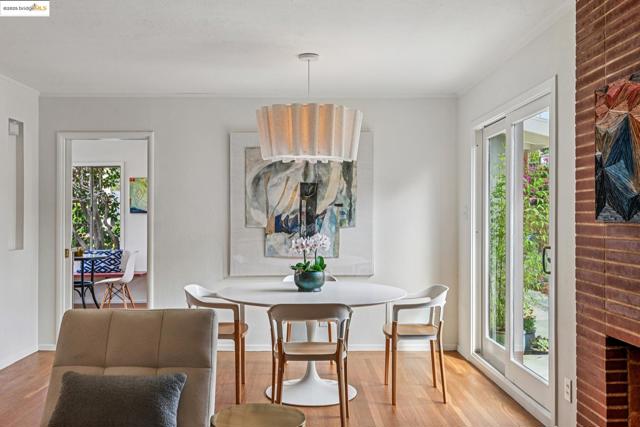 This updated and level-in mid-century modern home on sweet Silva leaves little to be desired! Featuring a spacious kitchen with charming eat-in nook, a classic floor-to-ceiling brick fireplace in the living room, and an expansive family room with wood paneling and wide glass windows opening up to the private courtyard garden. Thoughtful updates with locally-made Heath and Fireclay tile make this home special. A vintage Wolf range in the kitchen and sculptural fabric chandelier in the dining room make the home unforgettable. Featuring an ideal layout with three bedrooms - one of which is an en suite with walk-in closet - and two bathrooms, a living room and family room that both open into the backyard, and an office nook perfect for work-from-home days! A large two-car garage connects directly to the sunny kitchen, and laundry is located here as well. Located in one of El Cerrito’s best neighborhoods, 5326 Silva Avenue is near Mira Vista and Poinsett Parks, a quick jaunt to shopping and retail, and easy commuter access for those who need it.