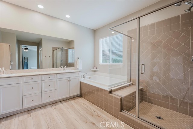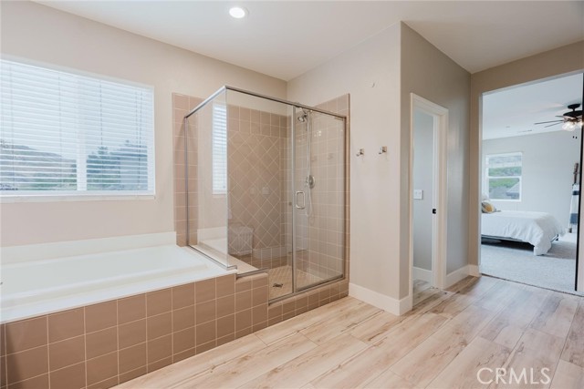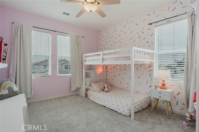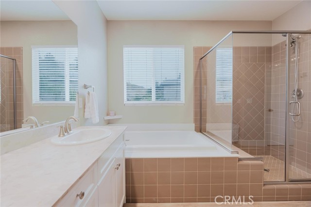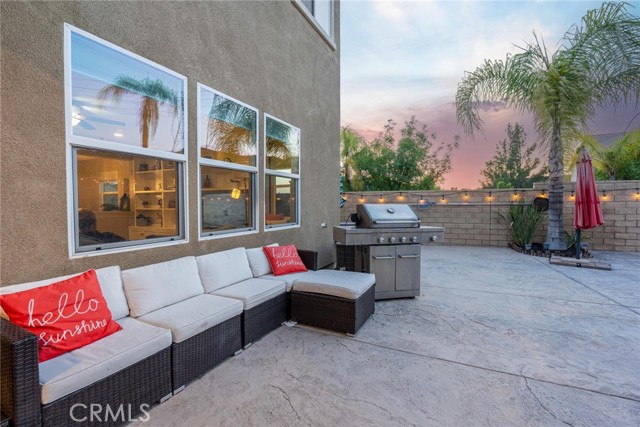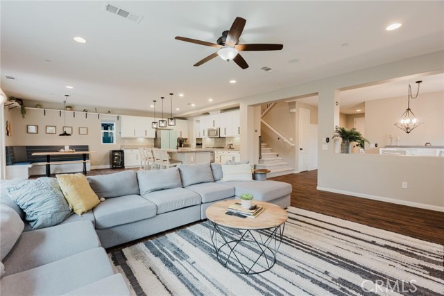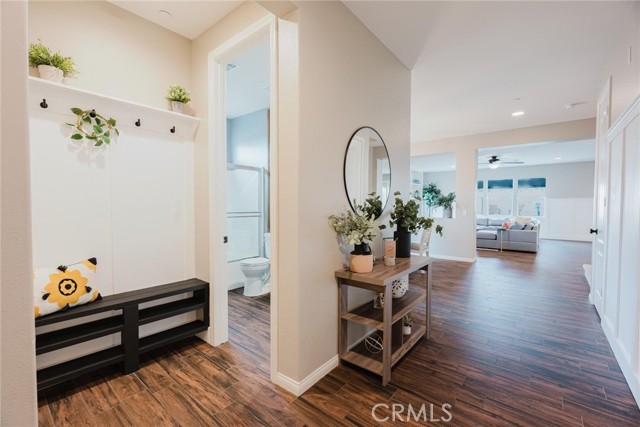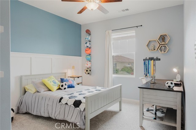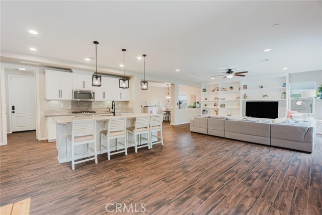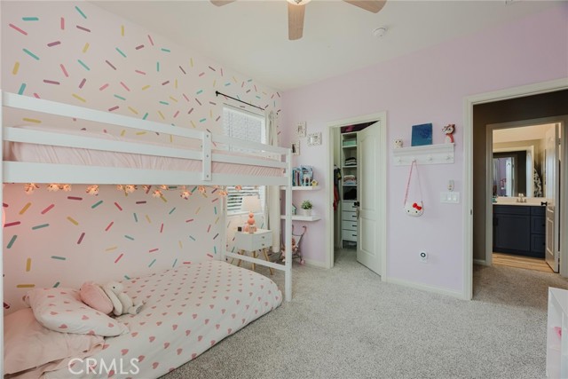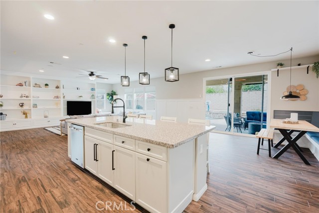 This beautifully updated 5-bedroom, 4-bathroom home offers 3,271 sq. ft. of spacious living, including an upstairs loft (possible 6th bedroom) + office area, and a full bedroom and bath on the main level. Ideal location on a CORNER LOT with added privacy and excellent parking for guests. Recent upgrades include custom wood paneling throughout the living areas and bedrooms, freshly painted cabinets with new hardware, updated light fixtures, custom closet organizers in every bedroom, luxury vinyl flooring in the bathrooms and newer carpeting upstairs. As you enter the front door you are immediately drawn to the bright, open floor plan. The formal dining room opens up to a spacious family room with custom built ins, surround sound and recessed lighting. The living area seamlessly flows into the kitchen featuring a large center island, updated pendant lighting, stainless steel appliances, and a custom built-in everyday dining area. Upstairs you will find 5 bedrooms plus the office area, complete with custom cabinets and wood planked walls. The generous primary suite boasts an electric fireplace, modern wood accents and a walk-in closet with custom organizers and lighting. The primary bathroom has luxury vinyl bathroom flooring, a large soaking tub and separate shower and additional linen storage. The secondary rooms are all a very good size, and the 5th bedroom has its own en-suite bathroom. Enjoy these upcoming summer months in your private backyard oasis featuring a sparkling pool and spa with tranquil spillover features. The outdoor California room is ideal for entertaining, complete with a ceiling fan, sunshades and TV mount for year-round enjoyment. You also have a nice grassy area and a large side yard on each side of the home. Downstairs laundry room with additional storage and pantry area. 2 car garage with overhead storage. Enjoy energy savings with fully OWNED SOLAR panels and tankless water heater. Terrific location just down the street from the community pool area, easy access to highly rated schools shopping and dining. NO MELLO ROOS!
