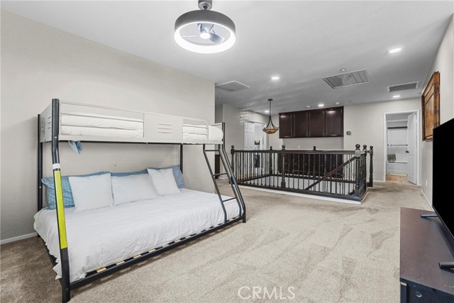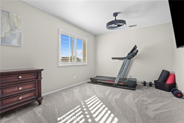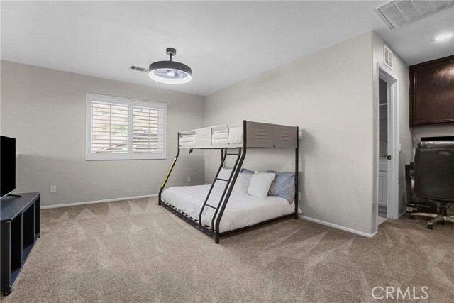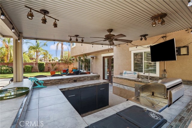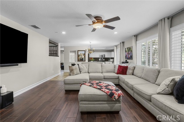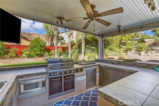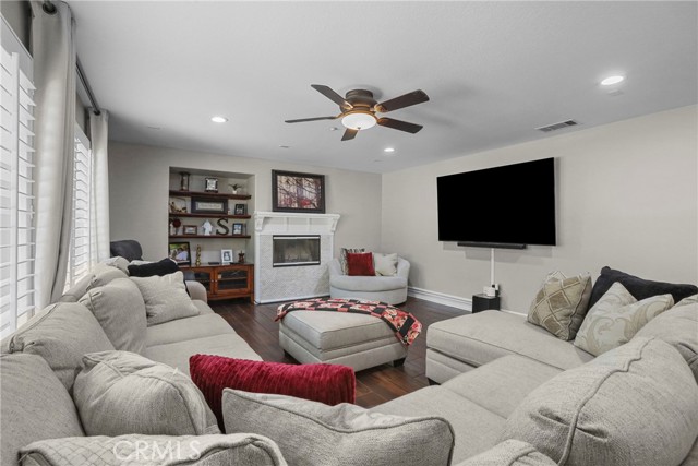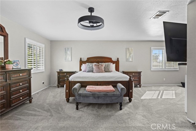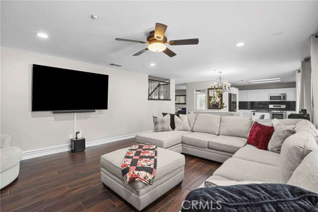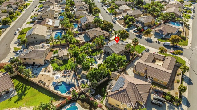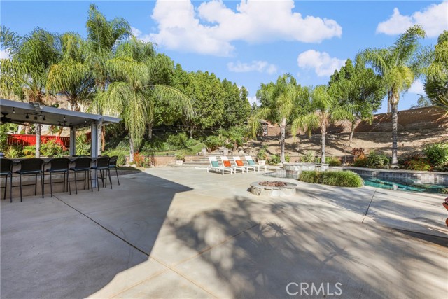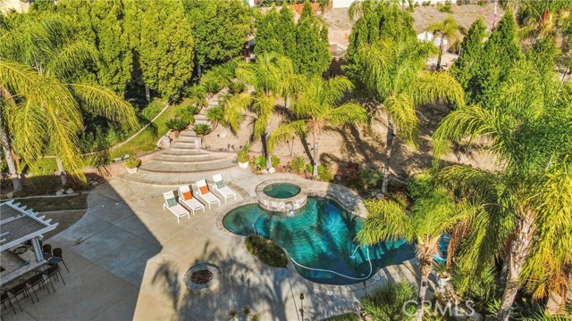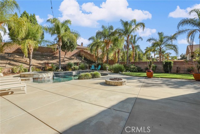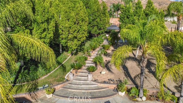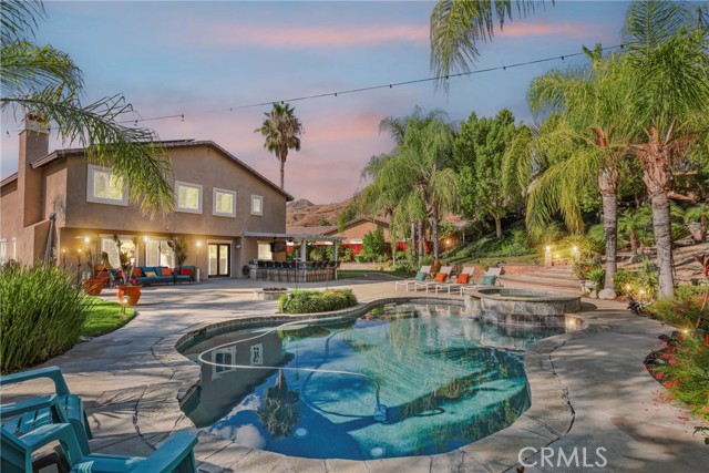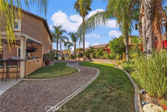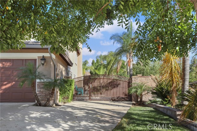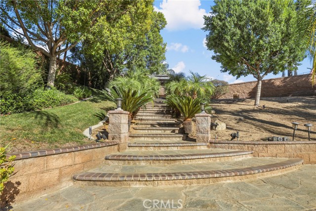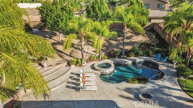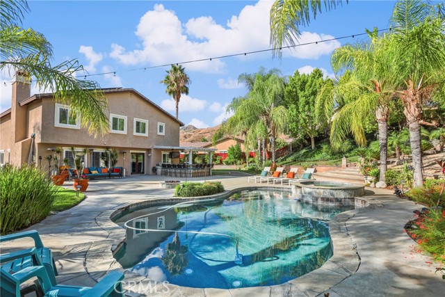Welcome to this exquisite resort-style home nestled in the sought after community of the Ventana Estrada East Highland neighborhood. This elegant two-story home is a 4-bedroom, 3-bathroom home sitting on an expansive 17424 sq.ft lot with 3138 sq.ft of beautifully designed living space, with a one-bedroom and full bath downstairs. This layout is ideal for multi-generational living or guests. Upstairs, you will find a flexible loft and work space that leads you into two additional bedrooms with one shared full bathroom. Plus, an oversized Primary Bedroom boasting dual sinks, walk-in closet, separate shower, and large soaking tub. The laundry room is conveniently placed upstairs with plenty of counter and cabinet space with a built in sink. Throughout the home you will find upgraded lighting, ceiling fans, newer windows, and plantation shutters. Step outside into your private dreamy resort-style living space in your own backyard. Enjoy the gorgeous built-in pool and heated spa with a waterfall. The gated yard features a covered BBQ/Bar and built-in gas fireplace for plenty of entertaining. A private staircase that leads you to your own serenity with quiet coffee mornings, meditation, exercise or simply to relax. The property also features a large RV parking space, mature landscaping, sprinklers, and a three-car garage for car lovers, tools and storage. Additional features include: Central heating and A/C, Tile roof and durable frame construction, Public water and sewer, Fireplace in the family room, Solar and Newer Windows. Located in a highly desired neighborhood with just minutes from freeways, the brand new Costco, Grocery Stores, Restaurants, and Mountain Grove and Citrus Plaza are only minutes away. This home is perfect for entertaining, relaxing, and enjoying all the perks of Southern California living.