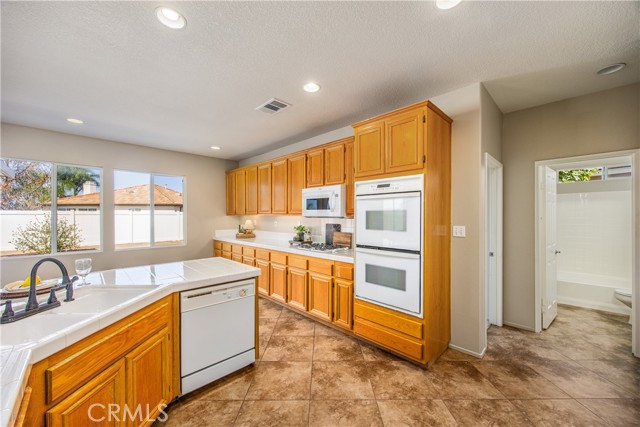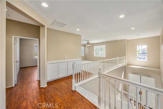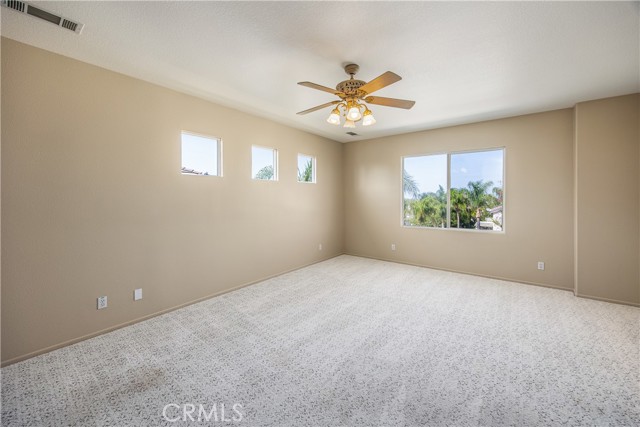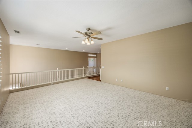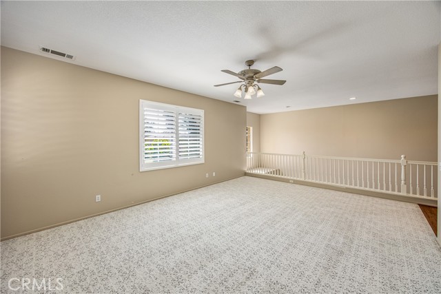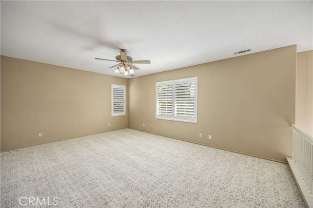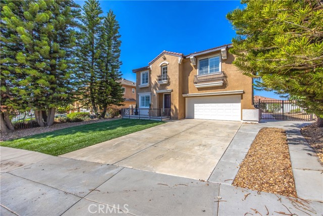 Two story 4 bed, 3.5 bath home on a cul-de-sac in the popular neighborhood of Orangecrest in Riverside. Full guest bedroom and bathroom downstairs, in addition to the powder bath. Kitchen open to the family room with seating at the tile counter and double ovens. Formal dining room connected to the formal living room. Fireplace in the family room. Primary suite upstairs boasts a breathtaking view of the city, separate tub and walk-in shower and two sinks in the primary bath. Shared hall bath also has double sinks and a tub-in-shower. Large bonus room upstairs. Ceiling Fans throughout and Plantation Shutters on the front windows. Laminate flooring in family and living rooms. Tile floor in the kitchen and bathrooms. Carpet in all bedrooms and bonus room. Great curb appeal with new sod and inviting front porch. Alumawood covered patio and low maintenance landscaping in the backyard. Vinyl fencing and sprinkler system. 7 foot wide side yard allows for the possibility of boat or trailer parking. Finished two car attached garage. Quiet, family friendly neighborhood. Orange Terrace Park with fields, library, play equipment and community center close by. Plethora of shopping and dining options are a short drive away in all directions. No HOA and low taxes.