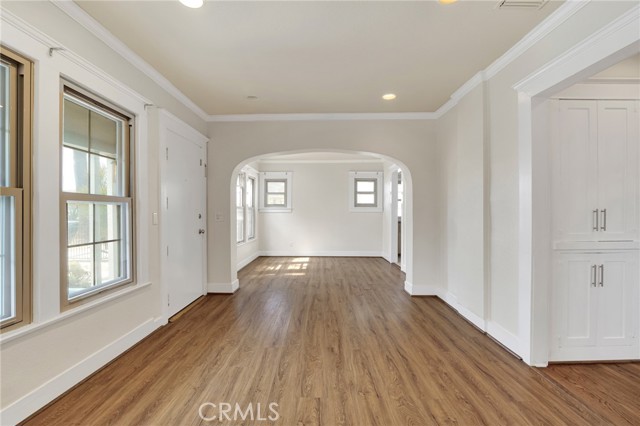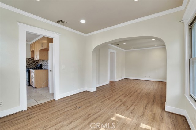 Up a meticulously landscaped blossoming front yard, and the spacious, shaded front porch, you'll find a beautiful home made for modern life here. This property has stood in the historic heart of Los Angeles for more than a century, and has grown along with it. What was once a lovely two-bedroom with gorgeous wood floors and light from every side of the home has expanded to utilize the property's second structure with many finishes that put the homes next owner much further ahead on the path to ADU potential. Back structure has been converted, upgraded and outfitted, and only needs permits. It includes an open concept kitchen and living space as well as private, spacious bathroom and bedroom. The original home's intelligent layout boasts an oversized kitchen with step-in pantry, two spacious bedrooms, and design details throughout like gently curved archways, crown moldings, shaker cabinetry, and walk-in closets. The lot is private and multifaceted enough to incorporate additional parking, lights and landscaping, or even a pool. This property has been well taken care of and has plenty of opportunity to add both value and utility. Front house is 874sqft according to assessor, back house is approx. 400sqft.