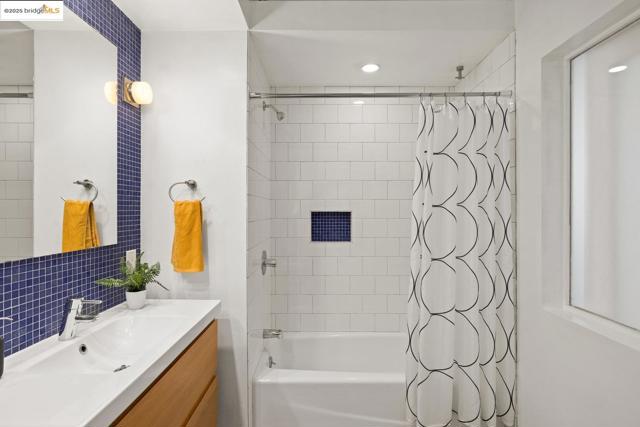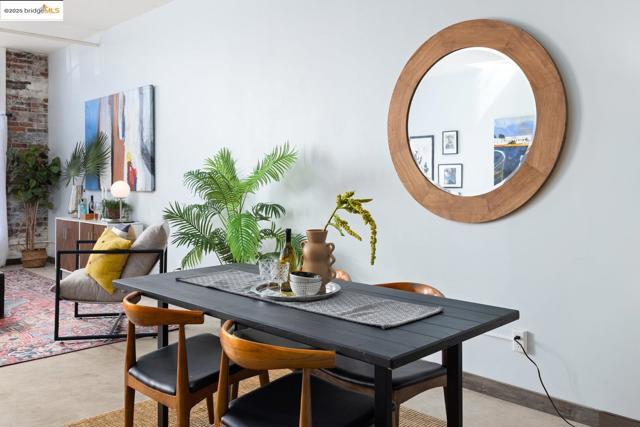 Glamorous brick loft in the Calous building near Uptown/KONO and Mosswood/Temescal. Soaring ceilings and great light, with one bedroom using sliding panels to configure the space how you want. The all-electric kitchen is beautifully updated with high-end cabinet storage. For dining options, you have a bar-height counter with seating, or a separate dining-room area. The large full bathroom is tiled to impress, and you'll love the in-unit laundry room next to it. There's even enough space for a home office set-up. One deeded parking spot comes with the loft, behind an automatic brick-and-iron security gate. There are plenty of comfortable spaces around the property to hang out, including a gardening area. It's a live/work loft that's ready for you.