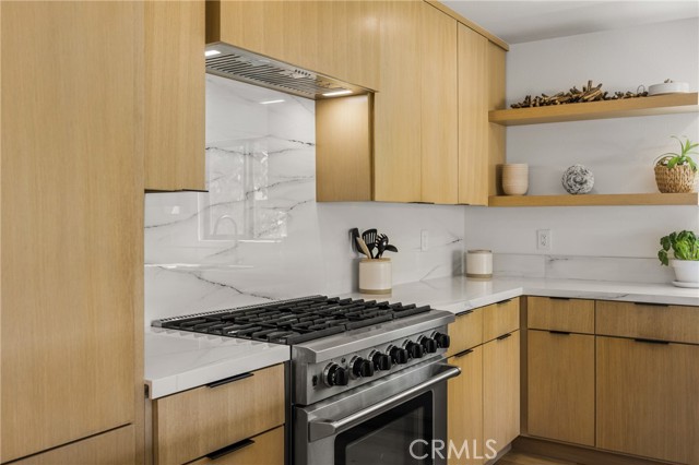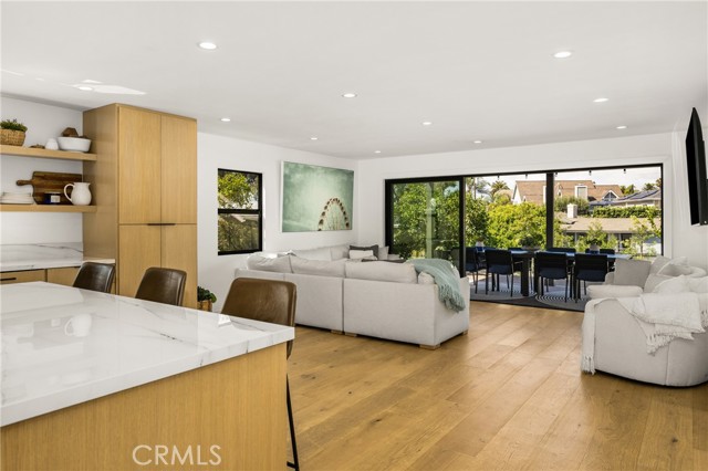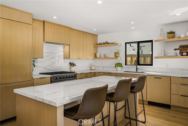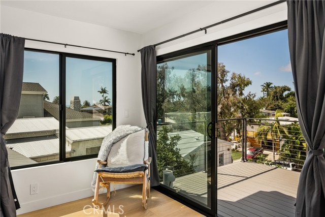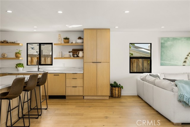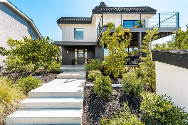 Welcome to this stunning 4 bedroom, 3.5 bath home showcasing a complete down-to-the-studs remodel finished in 2024. Every detail has been thoughtfully designed with high-end upgrades, including new roof, windows and doors, full HVAC system and ducting, tankless water heater, custom cabinetry, and French oak hardwood flooring. The spacious floor plan offers two bedrooms upstairs and two downstairs, with three bedrooms featuring en-suite baths for ultimate comfort and flexibility. The chef’s kitchen is a true centerpiece, with custom white oak cabinetry, built-in Miele refrigerator and freezer, Bosch dishwasher, Thor 36” gas range, a 7-foot island, and striking porcelain countertops and backsplash. Upstairs, the primary suite is a private retreat with a balcony offering ocean views, a spa-like bath with freestanding tub, and a 200 sq. ft. walk-in closet with custom built-ins. The upstairs laundry adds convenience, while outside you’ll enjoy mature olive trees along with lemon, lime, fig, guava, and orange trees for a touch of charm. This move-in ready home blends timeless design with modern luxury, offering a rare opportunity to own a turnkey property with every upgrade less than a year old.