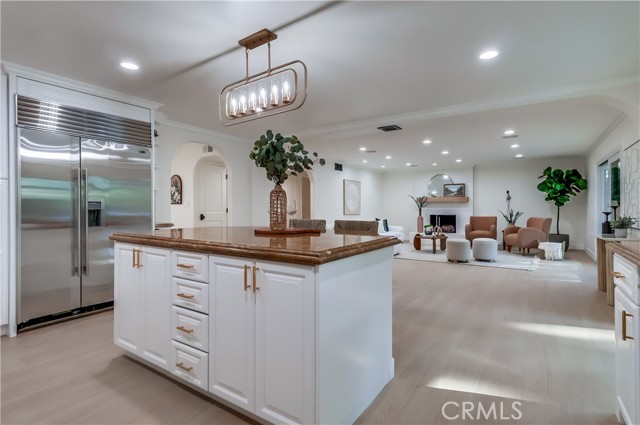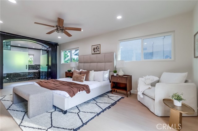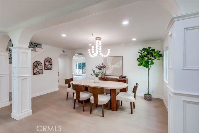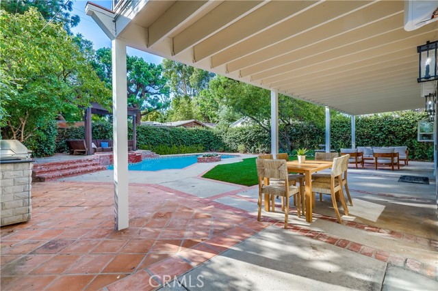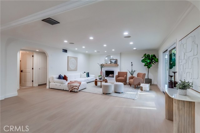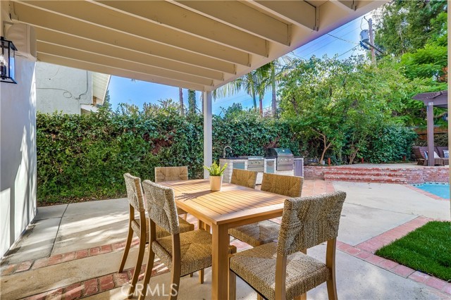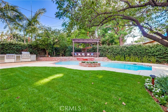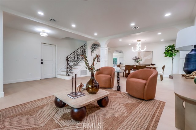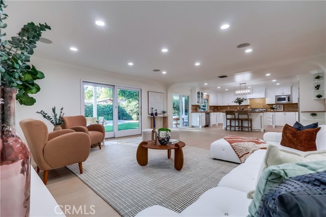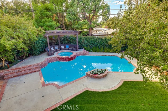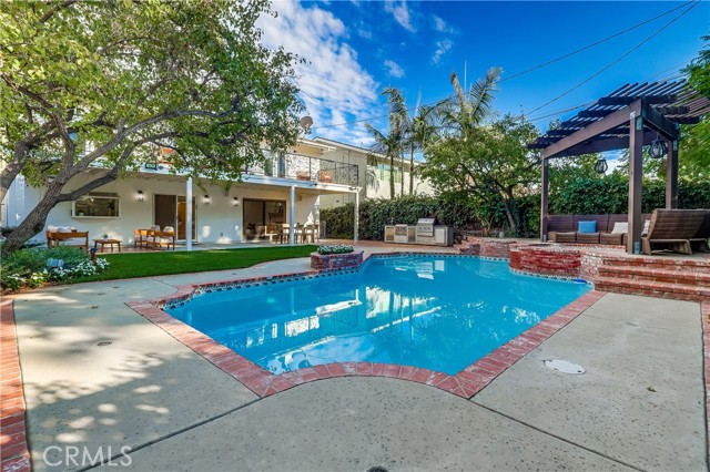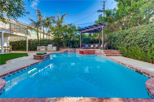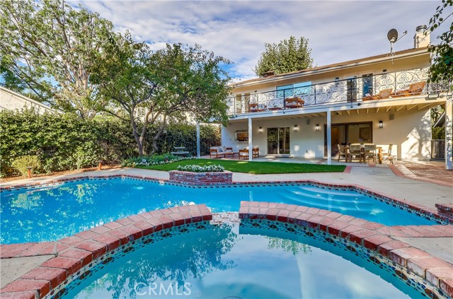 From the moment you walk through the front door of this Modern Spanish home, you’re welcomed by an open and inviting layout with beautiful archways that blends elegance and comfort. This beautifully remodeled 5 bedroom, 3 bath home in the sought-after Chandler Estates area of Sherman Oaks features a stunning updated grand kitchen, new floors throughout and a wonderful backyard. The home offers an open-concept design while maintaining defined spaces for dining and entertaining. The great room, complete with a cozy fireplace, opens directly to the kitchen outfitted with a stunning colbalt blue Viking range and a wall of glass sliders that lead out to the backyard. An attached two-car garage adds convenience and functionality. Upstairs, you’ll find 4 spacious bedrooms, including a large primary suite with abundant closet space and a spa-like bathroom, along with a fantastic balcony that spans across 3 bedrooms including the primary suite. A downstairs bedroom with full bath provides ideal space for guests or a home office. The expansive backyard is designed for every lifestyle, with a covered patio for al fresco dining, an outdoor BBQ island, a sparkling pool and spa, and a grassy play area — all set against lush landscaping. This home offers the perfect blend of thoughtful updates including updated smooth stucco, new grass, great outdoor lighting that can be controlled by your phone and 2 zone surround system all set in a premier Sherman Oaks location.