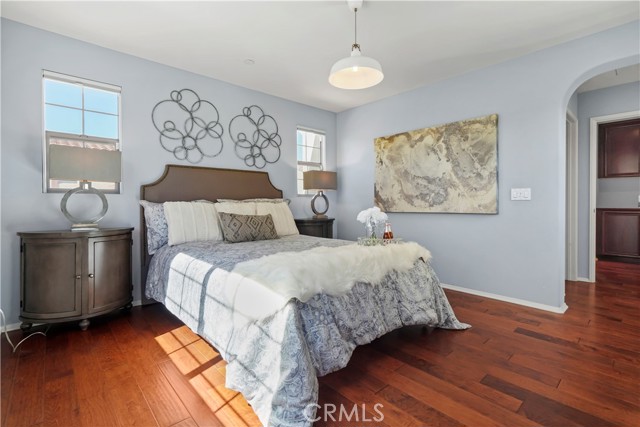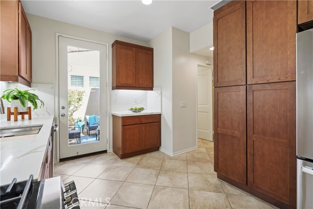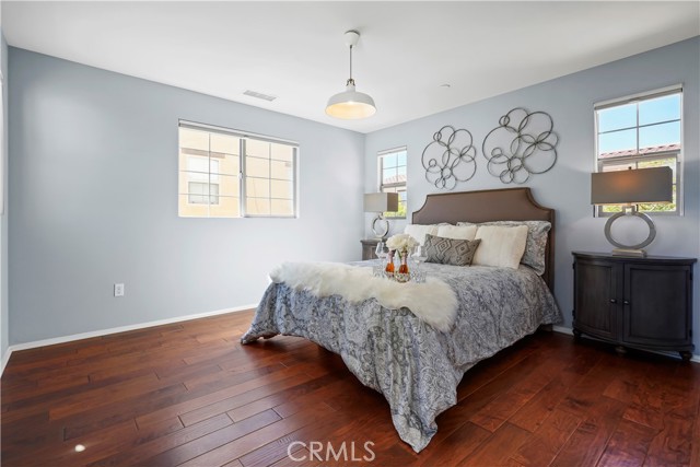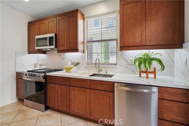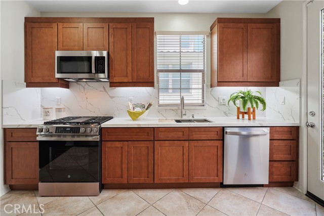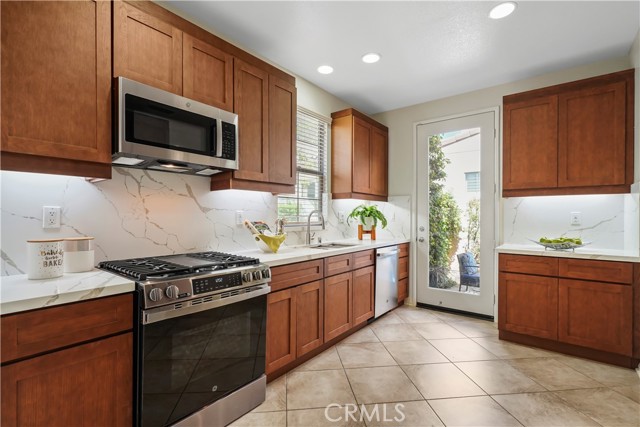 Welcome home to this gorgeous and immaculate detached townhome in the prestigious gated community of Tuscany in Porter Ranch! This lovely home offers an open concept floorplan light and bright with living room adjacent to the dining area, rich dark wood floors, kitchen is newly remodeled with brand new cabinets, brand new high quality GE stainless steel stovetop/oven, microwave, dishwasher and refrigerator, brand new stainless steel sink too, never been used. Also brand new beautiful quartz countertops just waiting for you! There's also a cozy patio area off the kitchen where you can have a tranquil romantic dinner. Upstairs you'll find a spacious master bedroom with luxurious master bath with a shower and oval tub combination, nice sized walk in closet too! Additional bedroom upstairs with ensuite bath. Convenient Laundry area is equipped with LG side by side washer and dryer (included!) behind closed doors. Tankless water heater for energy and gas efficiency. Convenient side by side 2 car garage. Private interior lot location! Resort style living with 2 community pools and spas. Located within walking distance to the Vineyards Shopping Center, Whole Foods Market, Movie Theater, Restaurants, close to CSUN, Sierra Canyon, hiking trails and parks! Best of all is the nearby much in demand Porter Ranch Community School K-8!