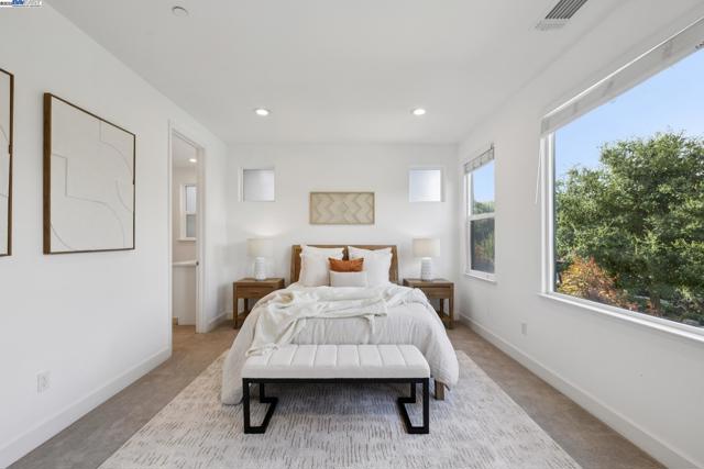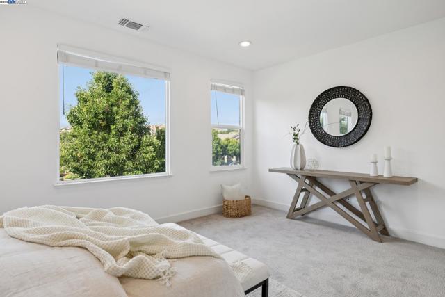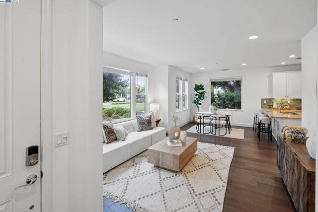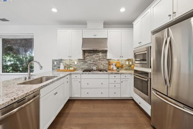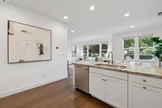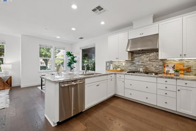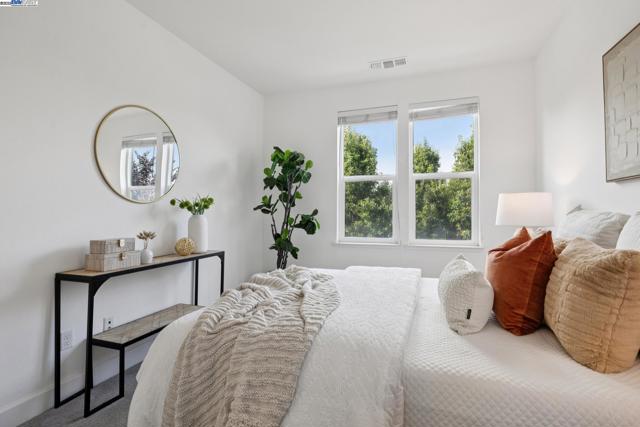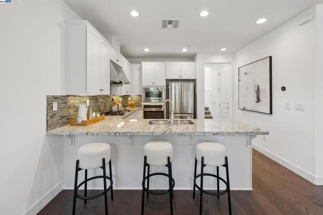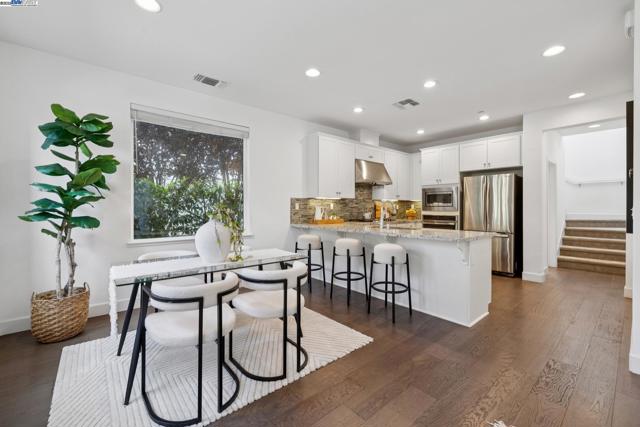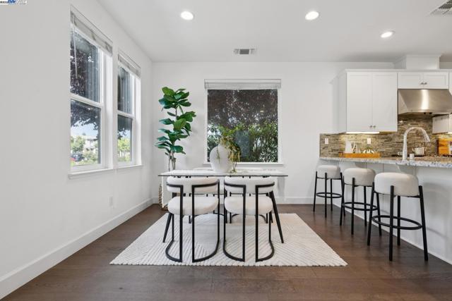 Nestled in the desirable Burbank community of Hayward, this stylish 3-bedroom, 2.5-bath single-family home offers the perfect blend of modern comfort, thoughtful design, and a premium park-facing location. Built in 2017 by Tri Pointe Homes, this two-story residence spans 1,692 sq ft and sits on a well-positioned lot with only one side neighbor and direct views of the community greenbelt. Step inside to a freshly painted interior that radiates warmth and invites you to move right in. The heart of the home is a contemporary chef’s kitchen, featuring granite countertops, a full-height mosaic tile backsplash, stainless steel appliances, and an oversized island with bar seating, perfect for casual meals or entertaining friends and family. The open-concept main level flows seamlessly into the dining and living areas, creating a connected and airy living space. Upstairs, you’ll find three generously sized bedrooms, including a tranquil primary suite with a walk-in closet and a spacious ensuite bath. The smart 2.5-bath layout ensures both functionality and privacy, making daily life and hosting guests a breeze. Enjoy the benefits of newer construction, including dual-pane windows, energy-efficient systems, and low-maintenance finishes.