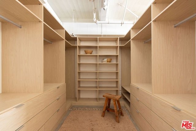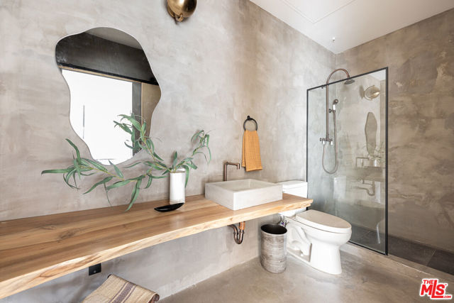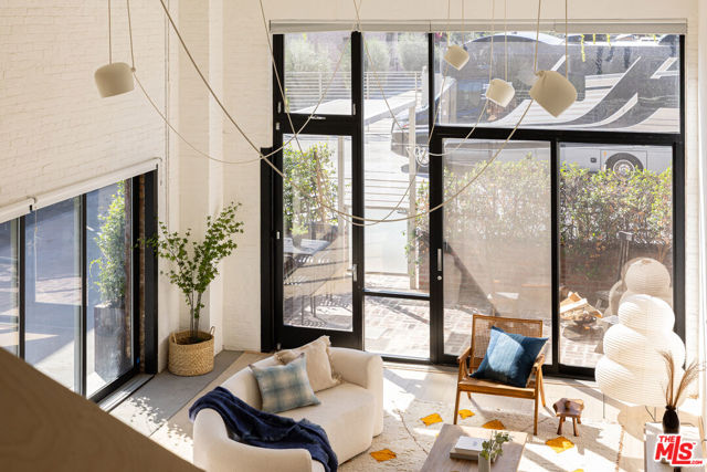 Reimagined by OWIU Studio, this distinctive loft marries traditional Japanese design principles with modern innovation to stunning effect and has been featured in Elle Decor, Forbes, Wallpaper, and Dezeen. Set within the iconic Biscuit Company Lofts, a seven-story factory built in 1925 and later converted into luxury residences, Unit 107 is unlike any other in the building. Step inside from a private courtyard to soaring 18-foot ceilings and an expansive open living space. Dramatic custom lighting and a spacious chef's kitchen, complete with concrete dine-in island and top-tier appliances, set the tone for effortless entertaining. Along the main level, 42 feet of sliding glass doors open wide to a quiet, off-street corner, making this the only loft in the building with this rare connection to the outdoors. A flexible guest bedroom doubles as a serene second living space, designed with Japanese-style built-ins, concealed storage, and raised tatami-style platforms that function as both bed frame and contemplative gathering area, perfect for tea ceremonies, reading, or creative inspiration. A soaring staircase, crafted from ten custom-fabricated panels with four angled interventions, leads to the mezzanine. Floating above the main level, this versatile balcony makes for an inspiring home office or studio. Upstairs, the primary suite offers a new walk-in wardrobe and en suite bath with dual floating vanity and a Japanese soaking tub. Residents of Biscuit Lofts enjoy a 75-foot saline pool, outdoor Viking BBQs, firepit lounge, state-of-the-art fitness center, and 24-hour concierge. With the added benefit of Mills Act property tax savings and an unbeatable Arts District location near Bestia, Bavel, Soho Warehouse, and Hauser & Wirth, this historic landmark offers the perfect blend of architectural pedigree, design innovation, and lifestyle. A truly dynamic property and a rare chance to claim a piece of Arts District history.