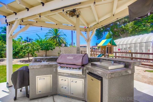 Welcome to this upgraded ranch-style oasis nestled on a serene street in Fallbrook, boasting a spacious layout on a generous, level lot. This charming home features a circular driveway, a 2-car attached garage, a detached garage/workshop, and dedicated RV/boat parking with 30am plug in, offering ample space for multiple vehicles. Inside, the single-story floor plan is both spacious and flexible, highlighted by a cozy family room adorned with a charming wood beam ceiling. The remodeled kitchen is a chef's delight, bathed in natural light and adorned with elegant granite countertops, seamlessly flowing into the family room. Both bathrooms have been tastefully remodeled to enhance comfort and style. The expansive backyard provides a private retreat ideal for entertaining, featuring a covered patio and a built-in BBQ under a separate awning and a gas fire pit. Enjoy summer days in the above-ground pool surrounded by a variety of fruit trees, including apples, nectarines, pears, plums, lemons, and peaches. A separate detached aluminum garage serves as an excellent workshop space, complementing the home's functionality. Added conveniences include a fully owned solar system with a bypass panel for generator use. Best of all, there are no HOA or Mello Roos fees!