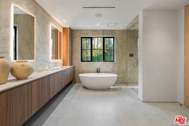 Tucked at the end of one of Brentwood's most coveted cul-de-sacs, this newly constructed estate defines privacy and prestige. Gated, secure, and set on an expansive nearly 12,000-square-foot flat lot, the property offers rare scale and seclusion in the very heart of the Westside. With 7 bedrooms and 10 bathrooms across more than 10,200 square feet of living space including 6 bedrooms in the main residence and a private 1-bedroom guest house this home is more than a residence; it is a private compound built for those who expect the best. Crafted by GME Development, every finish, surface, and detail has been executed with precision and elegance. Venetian plaster walls, imported Italian stone, and designer collections from Milan's most respected houses elevate the interiors to a standard rarely found. Soaring ceilings, dramatic volumes, and walls of Fleetwood glass create seamless flow to the outdoors. The backyard is nothing short of extraordinaryan immense, flat, resort-style retreat that rivals any in Brentwood. Mature landscaping frames a 40-foot pool and spa, heated covered terrace, full outdoor kitchen, and expansive lawns that make this one of the most desirable outdoor settings in the city. It is a true sanctuary, designed for both grand entertaining and quiet moments of escape. Inside, the estate offers seven bedroom suites, including a primary wing with nearly 14-foot vaulted ceilings, dual walk-ins, private fireplace lounge, and spa-inspired bath. A Molteni-designed kitchen with Wolf, Sub-Zero, and Miele appliances anchors the main floor, supported by a hidden chef's kitchen and walk-in pantry. On the lower level, a 5K theater, full gym, spa/massage room, wine cellar, and lounge extend the lifestyle experience, with natural light flooding the space through a rare full-length light well. A detached 800-square-foot ADU with its own address provides ultimate flexibility for guests, staff, or office use. With six HVAC zones, elevator access to all levels, and a gated motor court, the property is designed for effortless living at every turn. Located moments from Brentwood's top dining, shopping, and leisure amenities, this estate is a statement of design and lifestylean unmatched combination of scale, privacy, and luxury on one of the neighborhood's finest lots.