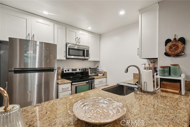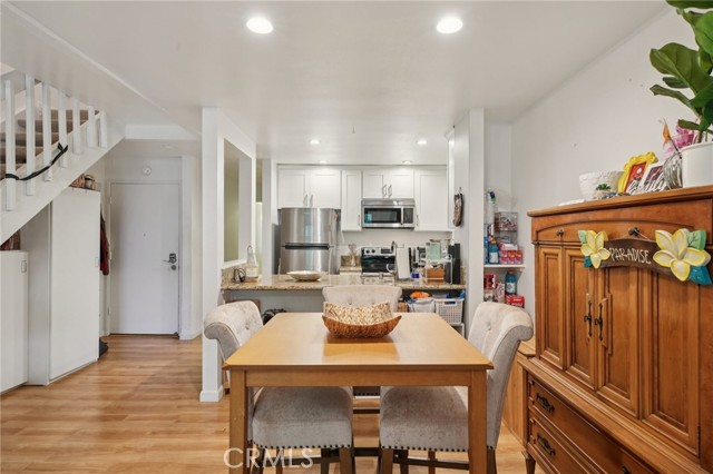 Discover tranquility and modern comfort in this rare upper-level corner unit at the sought-after El Dorado Lakes community. This inviting 2-bedroom, 1-bath home pairs charm and functionality with serene water views and your very own private garden patio overlooking the lily pad pond, the perfect retreat for morning coffee or sunset reflection. Step inside to find a freshly painted interior with granite countertops, an open-concept living area, and abundant natural light streaming through large windows. The kitchen blends functionality with modern appeal, featuring sleek appliances along with a breakfast bar ideal for casual dining or entertaining guests. The spacious main-level bedroom offers a walk-in closet and an updated bathroom with stylish finishes. Upstairs, a second bedroom with a private balcony provides a peaceful space to unwind or work from home. Additional features include deeded covered parking with storage, ample guest parking, and the comfort of a gated, pet-friendly community. El Dorado Lakes spans 11+ acres of lush, park-like grounds filled with streams, lakes, and vibrant wildlife, a true hidden gem in the heart of Long Beach. Community amenities include a pool and spa, sauna, tennis courts, and a recreation room with billiards. Just steps away, El Dorado Park offers trails, a dog park, golf course, and nature center, with a bike path leading straight to the beach. Conveniently located near shopping, dining, and the 605 Freeway, this is Southern California living at its finest.