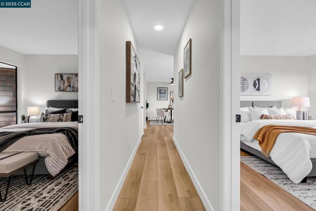 Beautifully updated 2-bed, 1.5-bath condo in the gated Saratoga Hills community. Recently renovated throughout, this move-in ready home features new luxury vinyl plank floors, fresh interior paint, new quartz countertops, stainless steel sink, new kitchen appliances, & bright open layout where the spacious living room connects seamlessly to dining area with convenient breakfast bar. Both bedrooms offer walk-in closets, while the bathrooms enjoy a luxury feel with modern vanities & LED-lit mirrors. Additional comforts include in-unit laundry, dedicated parking/storage. Residents enjoy secure gated entry, a sparkling pool, & a serene setting surrounded by mature landscaping. Perfectly located for commuters, with quick access to I-580 & I-238, just minutes from BART, making it easy to reach Oakland, San Francisco, or Silicon Valley. Everyday conveniences are close by, including Bayfair Center, local markets, restaurants, parks such as Don Castro Regional Recreation Area & Lake Chabot, & medical facilities like Kaiser Permanente San Leandro. Combining stylish upgrades with comfort, convenience, & community amenities, this condo is an ideal opportunity for buyers looking to enjoy modern living in a prime location. Welcome home!