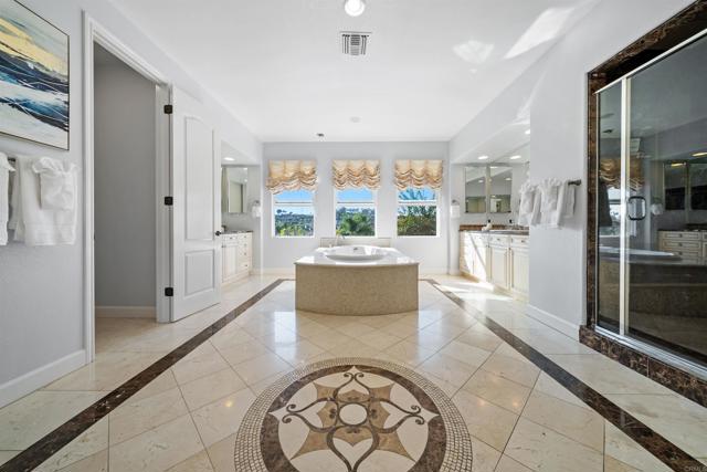 Welcome to this rare luxury estate in the prestigious La Costa Greens, Carlsbad — now professionally reimagined and newly restyled. Nearly 5,000 sqft of refined living space is nestled on a quiet cul-de-sac with panoramic views of the world-famous La Costa Golf Course, offering the ultimate in privacy, scale, and elegance. 6 bedrooms, 4.5 bathrooms, 4,913 sqft interior, 10,358 sqft lot Private downstairs suite ideal for guests or multigenerational living. Expansive chef’s kitchen with oversized island, custom cabinetry, marble finishes, and professional matching appliances. Grand primary suite featuring a dedicated study, marble-clad bath and vanity, a luxurious oversized spa tub, a generously sized walkthrough closet, and a walk-in shower. Elegant interiors with marble and rich wood flooring throughout. Built-in premium surround sound system throughout both levels — with a state-of-the-art setup in the living room that delivers a true home theater experience. Spacious built-in office on the main floor, featuring custom cabinetry and a hidden fold-out Murphy bed — perfect for guest accommodation or a private workspace. Signature, professionally designed water features in both the front and rear yards — luxurious fountains that provide a resort-quality ambiance and reflect a significant custom investment. Resort-inspired backyard featuring an outdoor fireplace and an outdoor kitchen with a brand-new built-in BBQ grill and refrigerator — never used and custom-installed exclusively for this home — surrounded by lush landscaping. 2 separate 2 car garages giving you plenty of parking + oversized motor court with parking for 4+ cars. No front or rear neighbors — open views and unmatched privacy. Community highlights: enjoy the perks of La Costa Greens’ private clubhouse, pool, gym, parks, and trails. Plus, the home is within walking distance to Alga Norte Community Park — Carlsbad’s largest and most complete park with aquatic center, sports fields, dog park, and community events. From serene mornings on the balcony with refreshing ocean breezes to vibrant evenings entertaining in your expansive outdoor oasis — this home is designed for luxury living at every turn. Last year, the identical floorplan in this community sold for $3.95M. Now offered at $2,899,000, presenting an extraordinary opportunity in today’s market. REMARKABLE, RARE OPPORTUNITY TO LEASE OR BUY! Property offered fully furnished, partially furnished, or unfurnished.