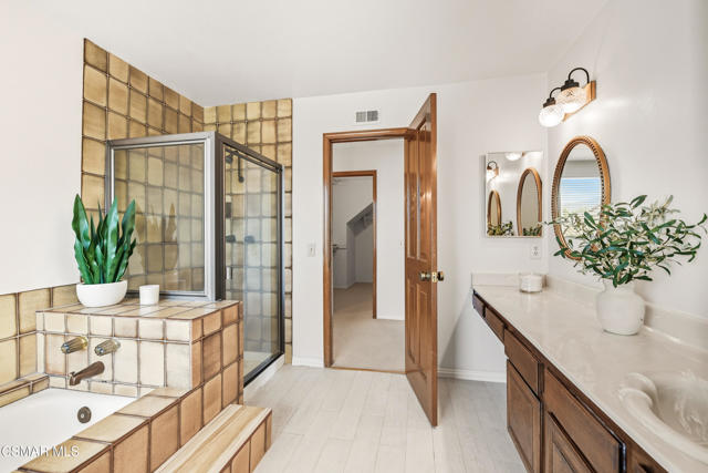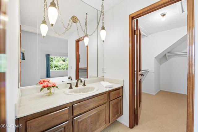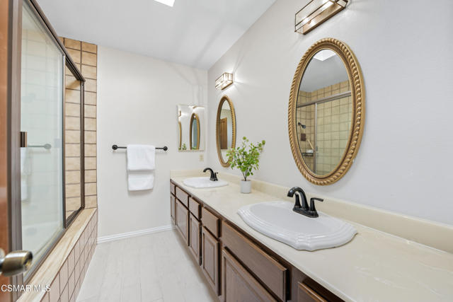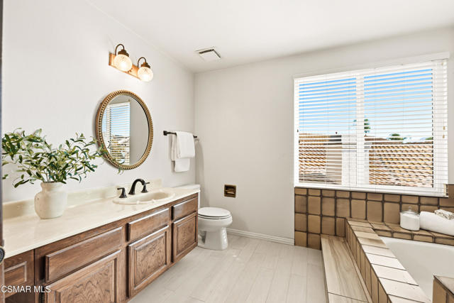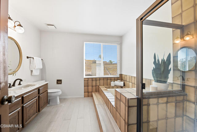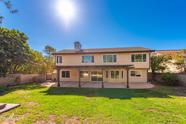 Tucked at the end of a quiet cul-de-sac in sought-after Morrison Ranch East Meadows, this two-story home offers exceptional curb appeal and a thoughtfully designed floorplan. A full bedroom and bath on the main level provide convenience and flexibility, while soaring ceilings in the living room and adjacent dining area create a bright, open feel. The kitchen opens to a welcoming family room with a cozy bar area, ideal for everyday living and entertaining. Upstairs, two guest bedrooms share a hall bath and a spacious landing that can flex as a home office, play area, or lounge. The expansive primary suite is a true retreat, featuring a private sitting area, large closet, dual vanities, and a separate tub and shower. Recent upgrades include all new dual-pane windows and sliders, fresh exterior paint, one newer HVAC unit, and electric car charger. Outside, the generous backyard offers a patio overhang, fruit trees (grapefruit, Sunkist, tangerine, fig, and loquat) plenty of open space ready to customize to your vision. Don't miss your opportunity to live in one of Agoura's most desirable neighborhoods!
