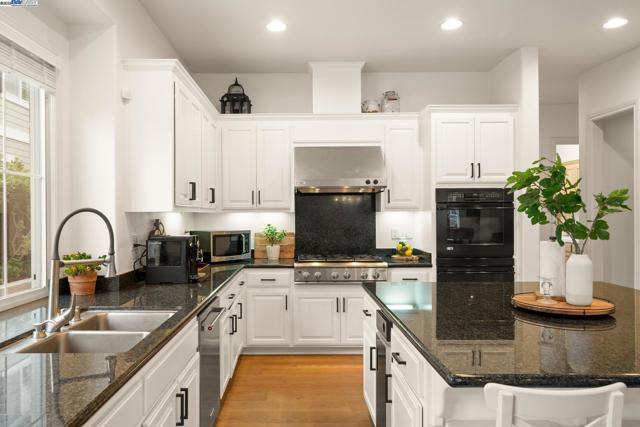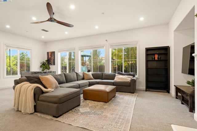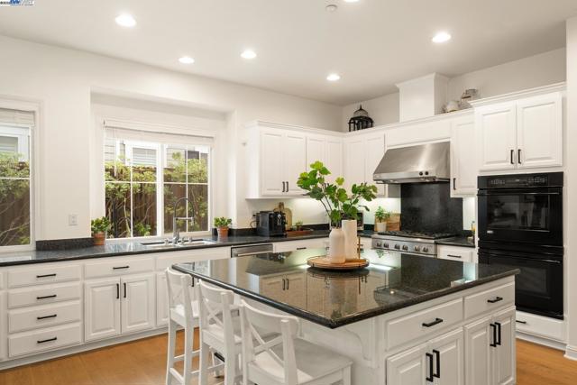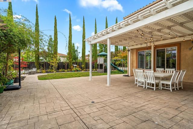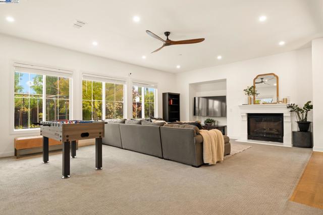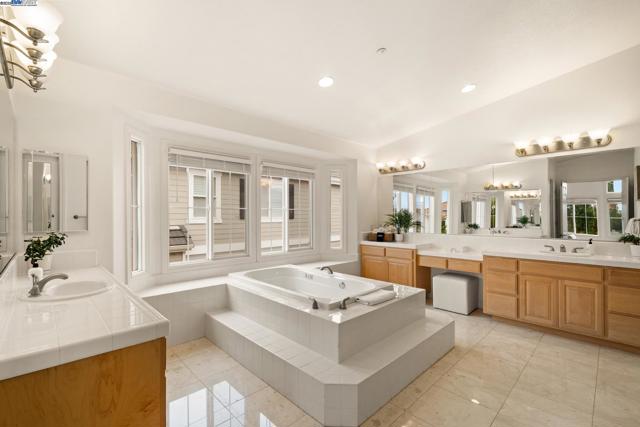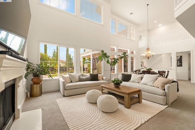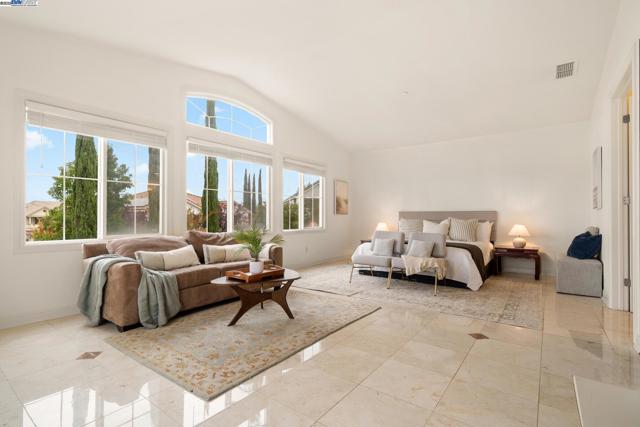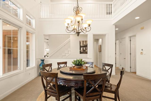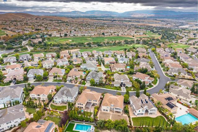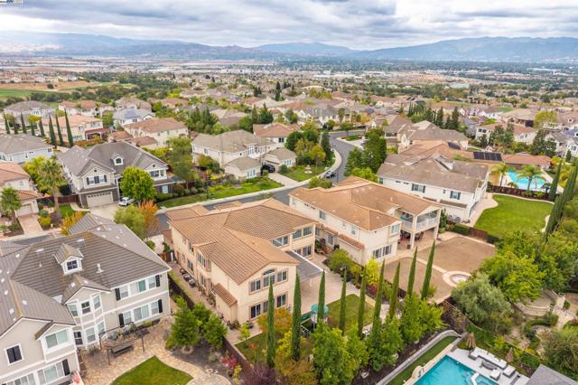 Rare Atherton Floor Plan in the exclusive gated Pinnacles community at Dublin Ranch Golf Course, offers a luxurious 5,585sqft home on a 10,800sqft lot. Ideal home for large families and entertaining guests. Built by Toll Brothers, this magnificent residence boasts five spacious bedrooms, each with its own full en-suite bathroom and a private library/ home office. The dramatic two-story foyer features an elegant circular dual staircase, while the formal dining and living room area is bathed in light from soaring two-story ceilings. Only model with back stairs which leads to an open concept floor plan with kitchen and family room looking out to a private covered patio and backyard. The kitchen is a culinary delight for home cooks with a large island upgraded granite counters, double ovens, gas cook range. Private master bedroom with a fireplace, huge master bathroom suite complete with two vanities, a jetted tub, a walk-in shower, and his and her spacious walk-in closet. Located near the SF Premium outlets, dining, top-rated schools, Bart, and easy access to the freeway. HOA amenities includes large community pool and tennis courts.