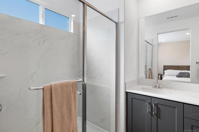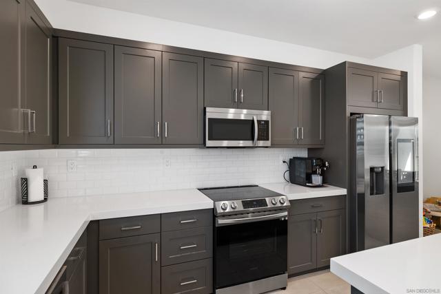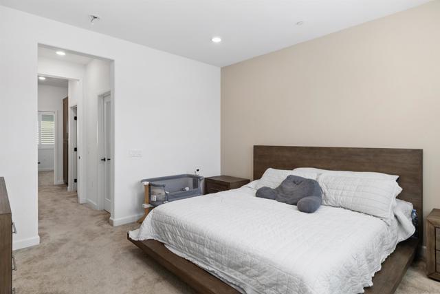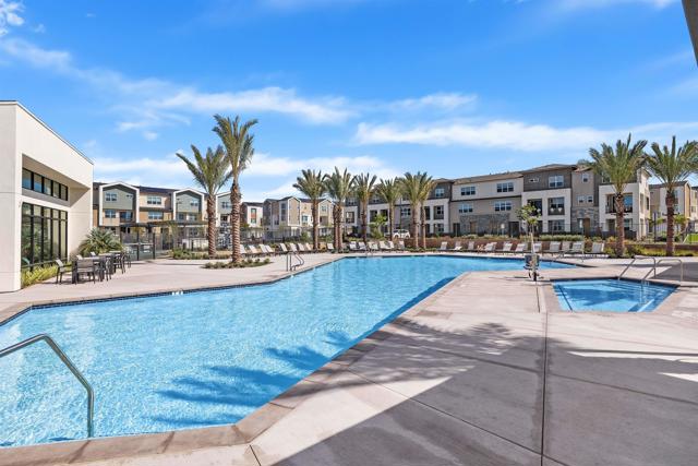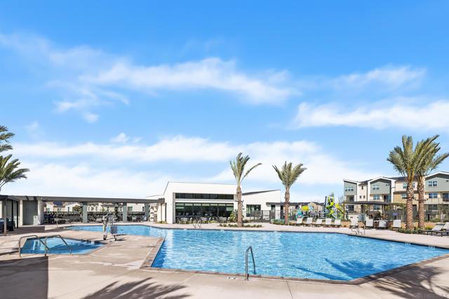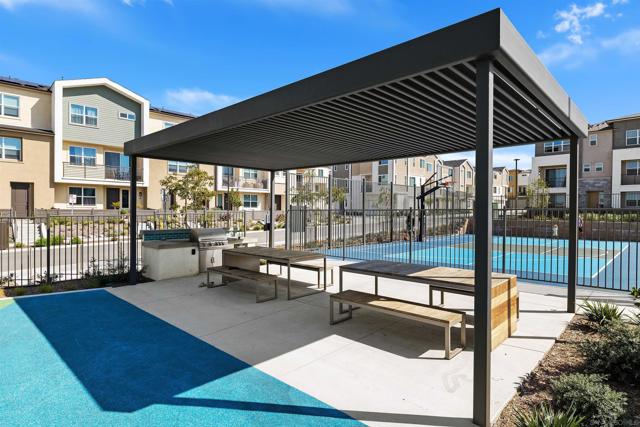 Welcome to this beautifully designed 3-level townhome built in 2024, offering modern living at its finest. The entry level features a private bedroom suite with direct access to the 2-car garage, with a Tesla wall. The open concept main level showcases a spacious living area with abundant natural light, a balcony for outdoor relaxation, and a gourmet kitchen with quartz countertops, stainless steel appliances, and elegant finishes. Designer shutters and dual sheer shades add a touch of style throughout. Upstairs, discover comfortable bedrooms and thoughtful details perfect for today’s lifestyle. Enjoy resort-style community amenities including a sparkling pool, hot tub, pickleball courts, weight room, and playground. A rare opportunity to own a move-in ready home with contemporary upgrades, solar, and exceptional amenities.