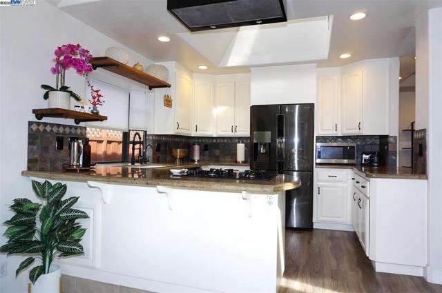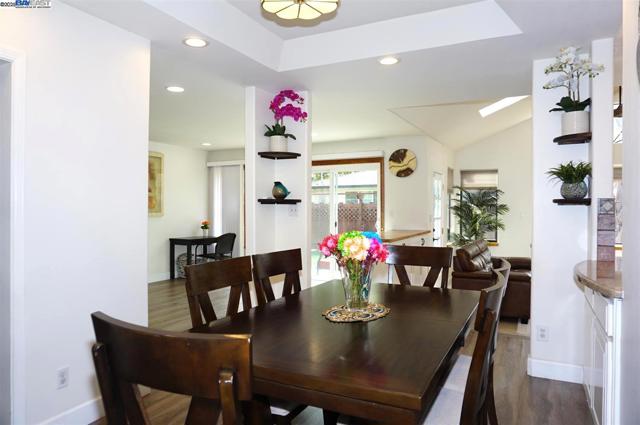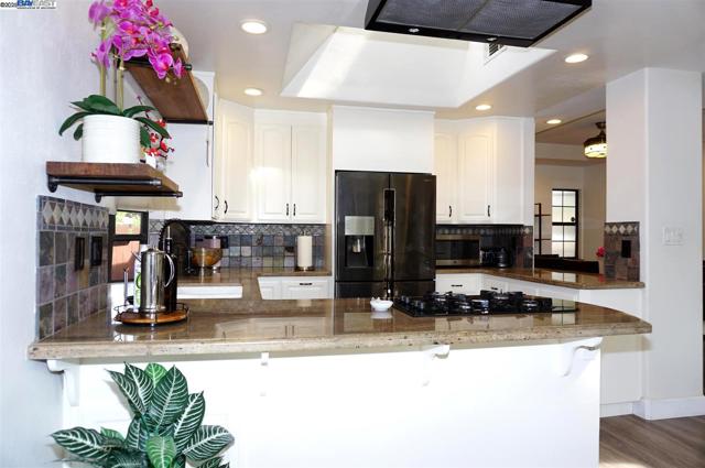 Welcome home! Absolutely move-in ready for your family! In the heart of the home is the sunny, beautiful family room with vaulted ceilings, 2 skylights, fireplace & a large bay window which opens to the lush green backyard. The formal dining area connects to the open living room with its own fireplace. The updated kitchen features granite countertops, breakfast bar, gas stove, stainless steel appliances and skylight. The outdoor kitchen with travertine countertop bar, stainless steel 36-inch BBQ gas grill/stove, mini-fridge, sink makes entertaining families and friends so much fun! New SPC floor throughout the house. Another skylight in the newer hallway bathroom! New master shower adds elegance and comfort. 5 years old Landmark Pro roof & newer Samsung AC. The upgrade is endless! Close to shopping centers/restaurants & big tech companies such as Apple, NVIDIA (only 5 mins drive) and parks. Don't miss this opportunity to make this Silicon Valley home yours! Open house Saturday & Sun 1:00PM-4:00PM.