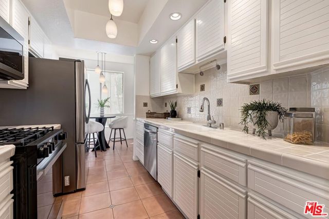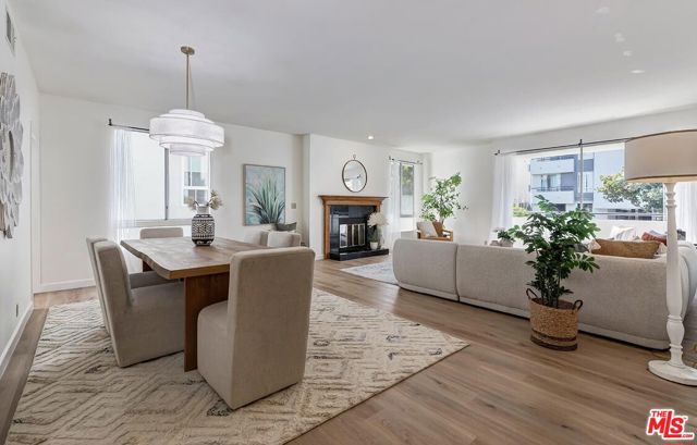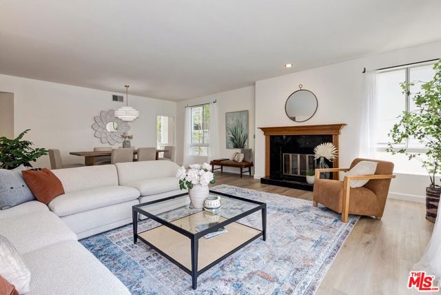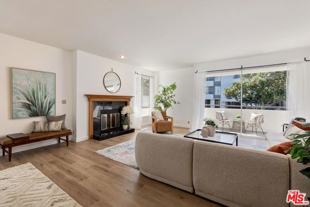 Gorgeous and spacious, this beautifully updated 2-bedroom, 2-bath corner-unit condo is ideally located in a modern 15-unit building in the heart of Brentwood, surrounded by shops, restaurants, and just moments from Brentwood Village, the Sunday Farmers Market, Westwood, UCLA, Santa Monica, and the beach. Spanning 1,622 square feet on a single level, this bright and airy home features high ceilings, an open-concept living and dining area with brand-new luxury vinyl-wood flooring, a cozy fireplace, built-in wet bar, and access to a private balcony overlooking a quiet, tree-lined street. The stylish kitchen offers warm tile flooring, white cabinetry, brand-new stainless steel appliances, and a charming breakfast nook. Both generously sized bedrooms also have new flooring, including a spacious primary suite with 2 walk-in closets and a renovated en-suite bath with a soaking tub, dual sinks with marbled quartz countertops, new sinks and faucets, and a separate tiled shower. Additional highlights include central air & heat, in-unit laundry, linen closet, two parking spaces with a private garage door, and a secure, well-maintained building. This move-in-ready condo is the perfect blend of comfort, style, and unbeatable Westside convenience.