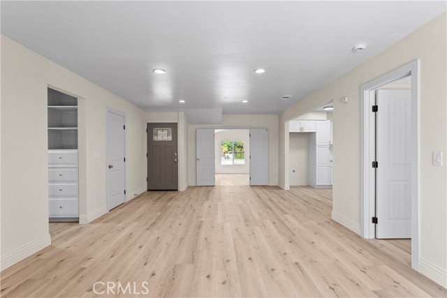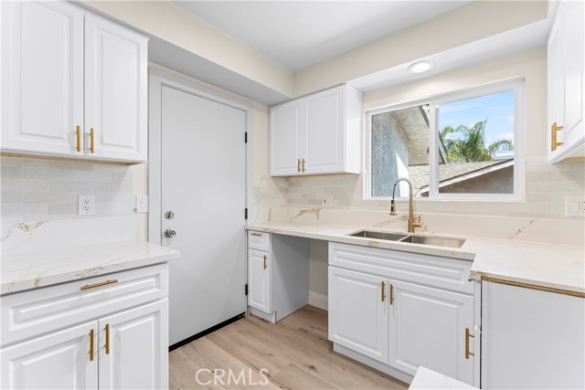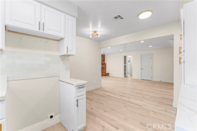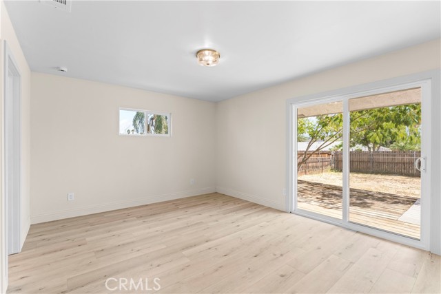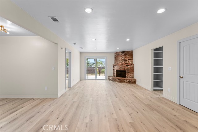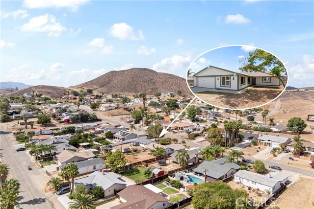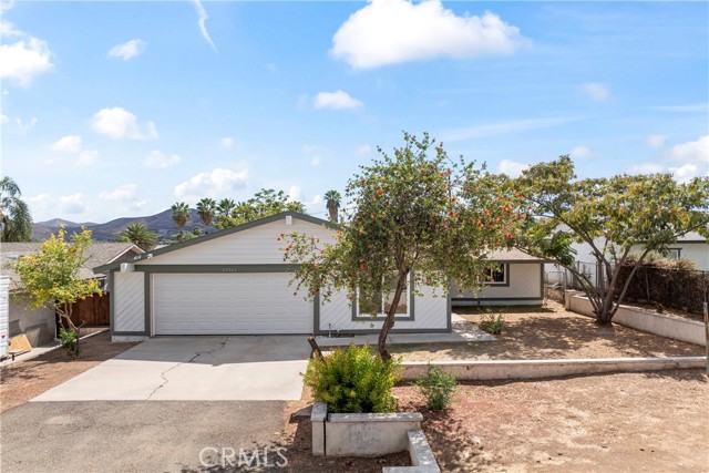Beautifully fully renovated 3 bedroom, 2 bath home in the desirable Quail Valley community, just minutes from the 15 and 215 freeways, shopping, Lake Elsinore, and Canyon Lake. This home features an inviting open floor plan with wood-like vinyl flooring, fresh paint, and a spacious living area highlighted by a corner brick fireplace. The brand new kitchen boasts calcutta marble countertops, new soft close hinges cabinets, and elegant gold hardware, combining style and function. The home offers two comfortable bedrooms plus a main suite, which features a private bathroom with designer finishes and a sliding glass door leading to the backyard. The living area also provides direct backyard access through another new sliding glass door, creating a seamless indoor-outdoor flow. Upgrades include all new dual-pane windows, new sliding doors, new interior doors, and a stunning new front door, as well as a new central AC system. The bathrooms showcase a designer touch with modern gold fixtures with a spa like feel, adding elegance throughout. The spacious backyard with a deck is perfect for entertaining, while the 2-car garage with a new door adds convenience. An additional non-permitted room (19.5’ x 9.5’) with double-entry doors offers flexibility as a home office, gym, or playroom. This is a must-see home blending modern design, comfort, and a great location ready to welcome its new owners!