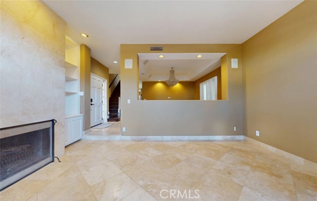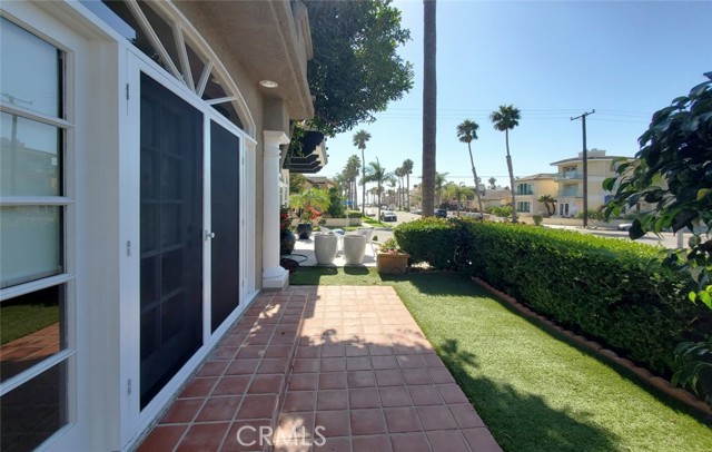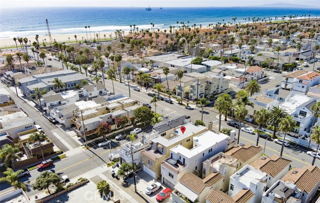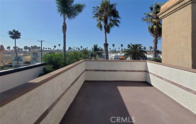 Stunning Tuscany-style coastal gem just two blocks from the sand on an elevated lot! This bespoke trilevel residence blends elegance with beachside ease, offering nearly 3,000 sq ft of living space. Enter the private front door into an open formal living and dining layout with wide windows, a fireplace, and French doors that flow to a front patio. The entire first floor is finished with elegant travertine flooring. The recently remodeled gourmet kitchen showcases modern quartz countertops, soft-close cabinetry, and a generous eat-in large counter adjacent to a cozy nook with French doors opening to a private courtyard. Mid-level includes a 2-story towering family room with a fireplace. The master suite is your sanctuary — private balcony, fireplace, spa bath, built-in cabinetry, and walk-in closets. In the rear is a secondary bedroom with an en-suite bath. The top floor hosts a third bedroom with a full bath, a generous office nook, and dual rooftop terraces with peekaboo ocean view. In addition to a 2-car garage, this home boasts a full-length driveway — a rare luxury in Huntington Beach — providing ample parking. With exquisite finishes and walking distance to the beach, parks, shops, and Main Street, this home captures the best of coastal living.
