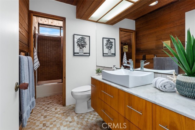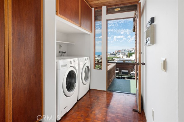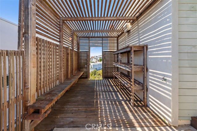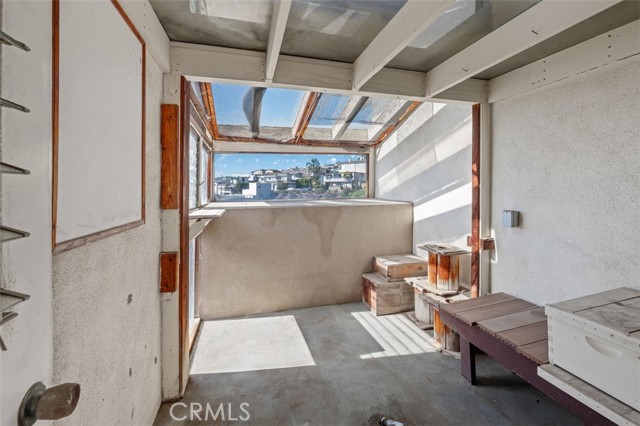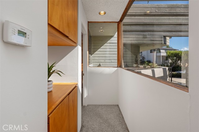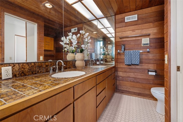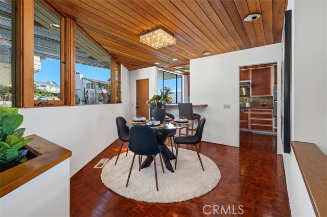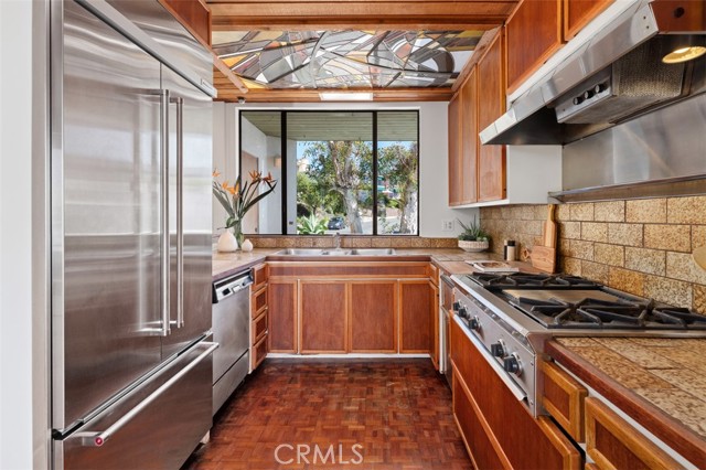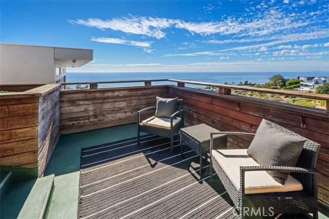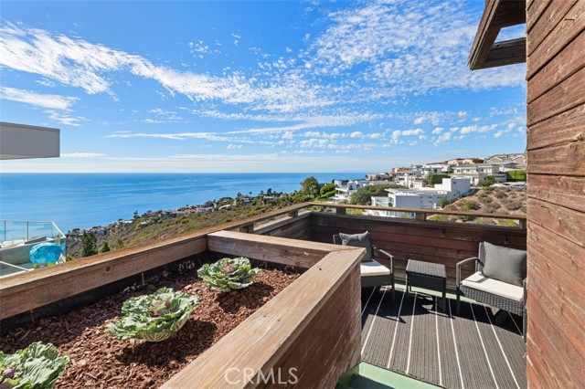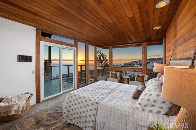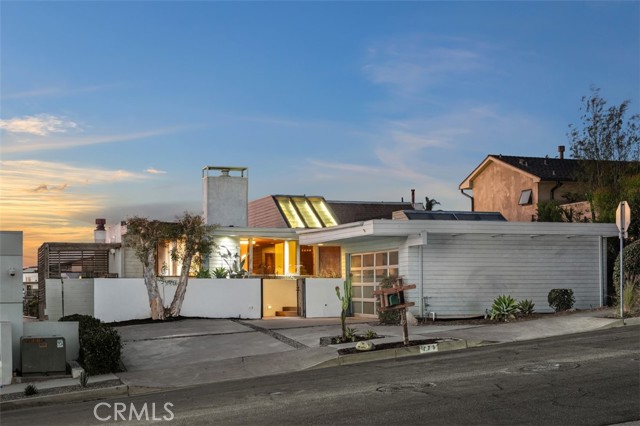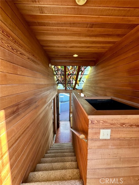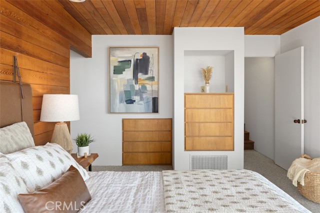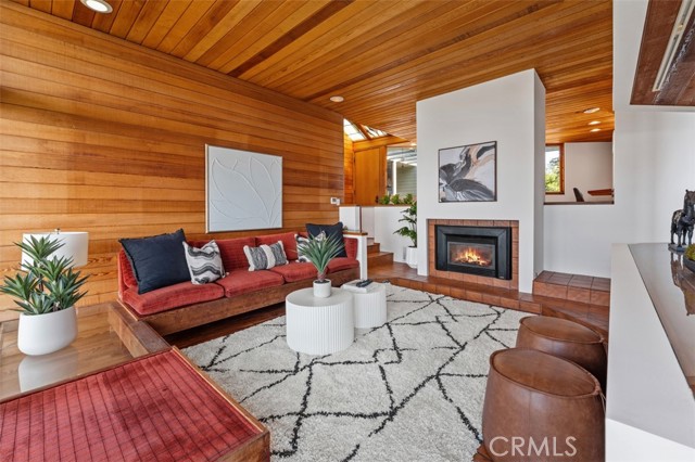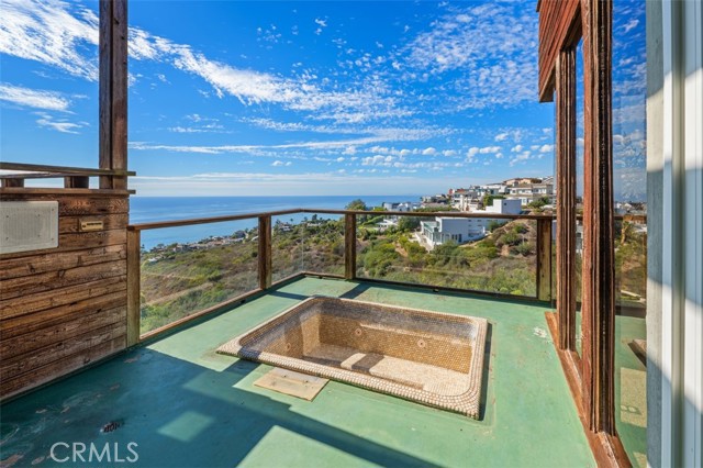 Perched atop Balboa Avenue, just steps from Moulton Meadows Park, this 1977 mid-century residence offers panoramic views of the Pacific Ocean, canyon, and coastline. Designed by award-winning architect Blair Ballard, recognized by the Laguna Beach Architectural Guild for excellence in residential design, this home reflects Frank Lloyd Wright’s organic architecture philosophy of blending structure and setting in harmony. Its multi-level layout features cedar plank walls and ceilings, expansive glass, strong horizontal lines and a timeless mid-century modern aesthetic. Two exquisite handcrafted stained-glass installations by Mogens Abel, revered wood carver and longtime Festival of Arts exhibitor, are set in the entry and kitchen ceilings and beautifully infuse the space with color, artistry and Laguna’s creative spirit. The primary suite offers stunning ocean views through walls of windows and includes a walk-in closet and a step-down shower with a full-length view window. Sliding glass doors open to the deck with a sunken jacuzzi for enjoying the spectacular sunset views over Victoria Beach. Two additional bedrooms off the main entrance hallway are ideal for a home office or guest room. Both the family room and upper-level den offer captivating ocean views and refreshing coastal breezes. The side yard patio opens to a trellis covered potting shed and leads down the hill to an ocean-facing greenhouse. While the home requires some restoration, it is solidly constructed and full of character, including the original built-in seating, hardware and cabinetry. Don’t miss this rare opportunity to personalize and revive a living piece of Laguna Beach’s celebrated art culture and architectural legacy.