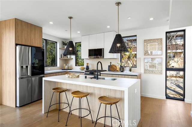 Final 2 Homes - Brand New Price! Introducing “The Everett Six”, a limited collection of six architecturally significant, Fully Detached Single-Family Homes in the heart of Echo Park with Panoramic Downtown LA Views. Each residence is situated on its own fee-simple lot with No Common Walls and showcases explosive Downtown Los Angeles skyline views from a private rooftop deck. Thoughtfully designed and meticulously built in 2025, these homes are positioned across from the iconic Everett Park and just steps from the vibrant energy of Sunset Blvd, with coffee shops, restaurants, and nightlife all within easy reach. Smart, sustainable, state of the art features include 6 solar panels fully paid off, LG all-electric multi-zone heating & cooling system (no gas combustion), EV charging infrastructure built-in, LG stainless steel kitchen appliance pkg + LG washer & dryer included. Curated Designer finishes include Cosentino porcelain countertops imported from Spain, Pottery Barn/Crate & Barrel light fixtures throughout, Artisan Italian & Spanish tile throughout, European white oak wood flooring and Oversized walls of glass and casement windows flood interiors with light. Smart home technology includes Yale remote electronic door lock, LG smart thermostats, Ring video doorbell, pre-wired A/V in all bedrooms & living areas. Each home’s private rooftop deck is the showpiece — with pre-plumbed gas and water lines ready for outdoor kitchens and gatherings. Enjoy unforgettable sunsets and skyline views, host friends under the stars, or create your own rooftop garden oasis — all with front-row panoramic views of Downtown LA.