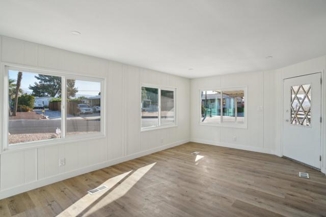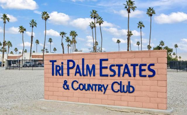 COMPLETELY REMODELED interior with fresh, modern finishes throughout! This beautifully updated home features an open-concept kitchen and family room with a glass slider that leads to a spacious covered patio--perfect for indoor-outdoor living. Enjoy stylish vinyl flooring, quartz countertops, stainless steel appliances, energy-efficient windows, and recessed lighting throughout. The primary suite includes a private bath and a large walk-in closet, while the guest suite offers direct access to the hall bath. Additional features include a separate laundry room, an extra-wide side-by-side two-car carport with additional storage, and a rear yard with a bonus storage shed. Best of all, you own the land with low annual HOA dues. The 433A Permanent Foundation allows for Conventional, FHA/VA, and Reverse Mortgage financing. Located in the sought-after Tri Palm Estates and Country Club, a vibrant 55+ community, your low monthly fee includes unlimited golf for two deeded owners on the 18-hole executive course and the 9-hole par-3 course. Residents enjoy two outdoor pools and spas, lighted tennis and pickleball courts, shuffleboard courts, two practice putting greens, and a beautifully maintained clubhouse with dining, banquet space, and a social lounge bar. The community also boasts a full calendar of social events. Conveniently located near I-10, Costco, Sam's Club, Home Depot, Walmart, Lowe's, movie theaters, and a wide range of restaurants. Just minutes from Agua Caliente Casino, Acrisure Arena, and the upscale shops of Rancho Mirage and South Palm Desert. Plus, you're within the IID electric service area, offering lower utility bills!