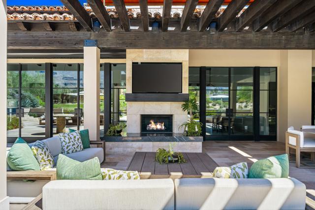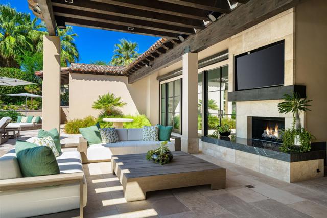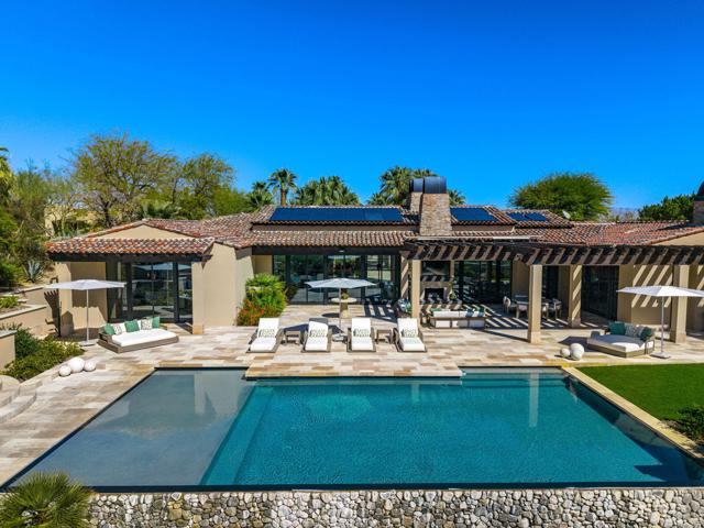 Welcome to this extraordinary custom estate, perfectly positioned along the 11th green of the Canyons course at the renowned Bighorn Golf Club. Recently reimagined with impeccable taste, no expense was spared and no detail overlooked in its transformation.A private gated courtyard leads to a dramatic great room crowned by a vaulted ceiling, where steel-framed French doors open to a limestone terrace and pool. From here, sweeping vistas of the Tom Fazio-designed fairways and the rugged San Jacinto Mountains create a breathtaking backdrop. The great room flows effortlessly into the dining room, anchored by an exquisite double-sided fireplace, and onward into a striking Bultaup-designed kitchen and family room. The gourmet kitchen, outfitted with top-tier appliances, features a warm banquette for casual gatherings.Offering five bedrooms, including a detached casita, the home is designed for comfort as well as grandeur. The Primary Suite is a serene retreat with its own fireplace, expansive dressing room, and spa-like bath featuring a limestone soaking tub and steam shower with both wall-mounted and rainfall fixtures. For entertainment, a custom-designed theater with an 11-foot screen, digital projector, and acoustically tuned interiors provides a cinematic experience.Spanning 6,617 square feet, the estate celebrates desert living with a vast outdoor sanctuary complete with a full kitchen, covered dining, fireplace, television, pool, spa, and outdoor shower. Smart-home technology enhances the ease of everyday living, with custom furnishings, included per inventory, complete the offering.This is not simply a residence, but a refined desert retreat and exceptional home where architecture, luxury, and lifestyle converge. Bighorn membership available separately.