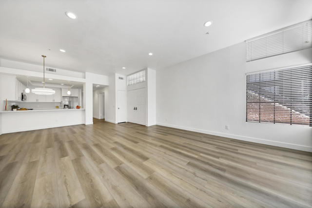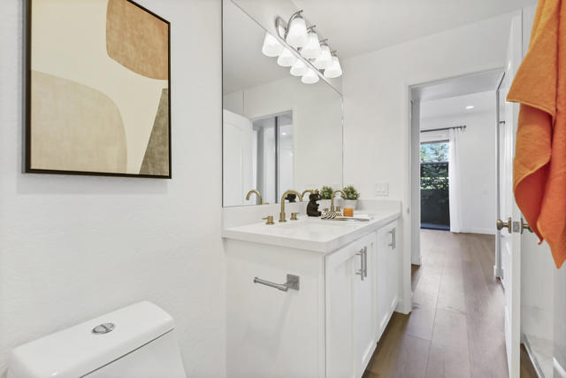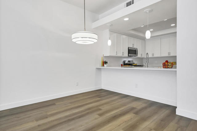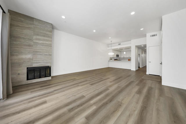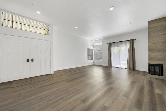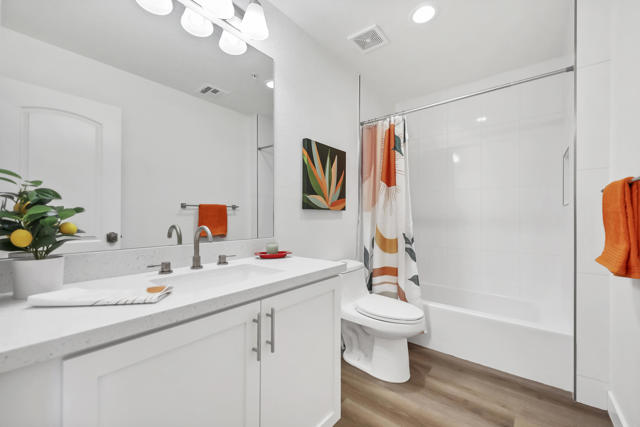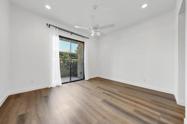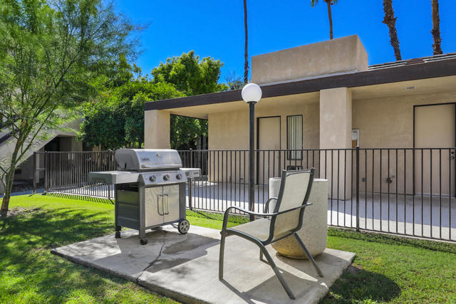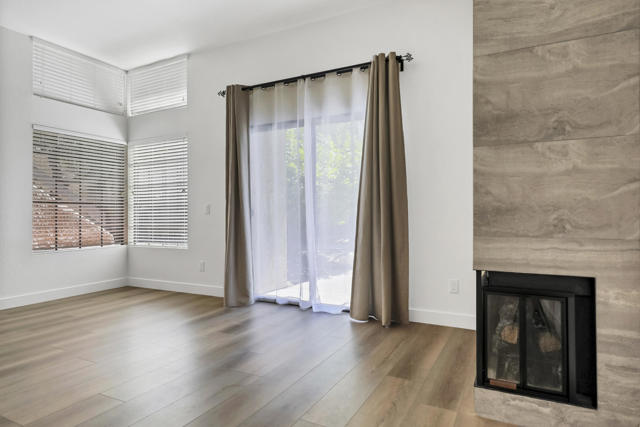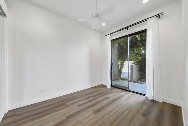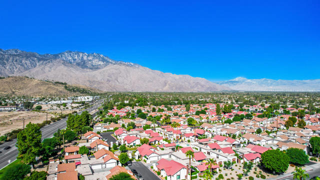 PRICED for Prompt Sale! Stylish remodel recently completed on this larger ground-floor, single-level condo in desirable SOUTH PALM SPRINGS -- and it's on FEE LAND! The open-concept design showcases oversized windows, high ceilings, and a dramatic floor-to-ceiling tiled fireplace in the great room, creating a bright, welcoming atmosphere. The fully remodeled kitchen is both functional and striking, with quartz countertops, custom cabinetry, counter-height breakfast bar, single stainless sink, and brand-new 2025 dishwasher and gas range. Both bathrooms are thoughtfully updated with quartz counters, new cabinets, a tiled tub/shower combo, and a step-in tiled shower in the primary suite. Extra linen cabinetry adds storage convenience. The primary suite offers double closets (including one walk-in) plus direct patio access -- an inviting space to enjoy morning coffee or evening relaxation. The versatile den can easily serve as a third bedroom, office, or hobby space depending on your needs. Additional features include luxury vinyl plank flooring throughout, ceiling fans in every bedroom, full-size laundry, and a new HVAC system (2022), helping keep utility costs comfortably low. Mountain views can be enjoyed from both the primary and guest rooms, enhancing the appeal of daily living. Located adjacent to one of the pools, this home makes enjoying the community's amenities effortless. Summerset Springs is a beautifully maintained gated community offering two pools, two spas, BBQ areas, lush lawns, and mature landscaping. Residents also enjoy covered assigned parking plus plenty of guest spaces, all with LOW HOA dues. This prime South Palm Springs location is directly across from Rimrock Plaza (Vons Center), and just minutes from golf courses, shopping, dining, entertainment, and outdoor activities. Palm Springs International Airport is approximately 3 miles away, making travel exceptionally convenient. HOA guidelines permit rentals of 30 days or longer, supporting both full-time residents and seasonal living. Truly a stylish, move-in-ready property that blends modern upgrades with an ideal Palm Springs lifestyle. See attached list of recent upgrades and special features.