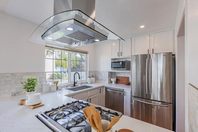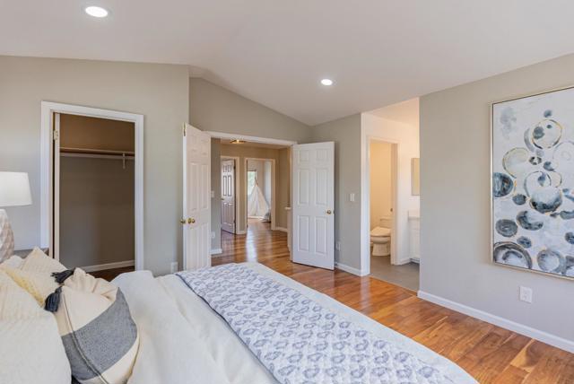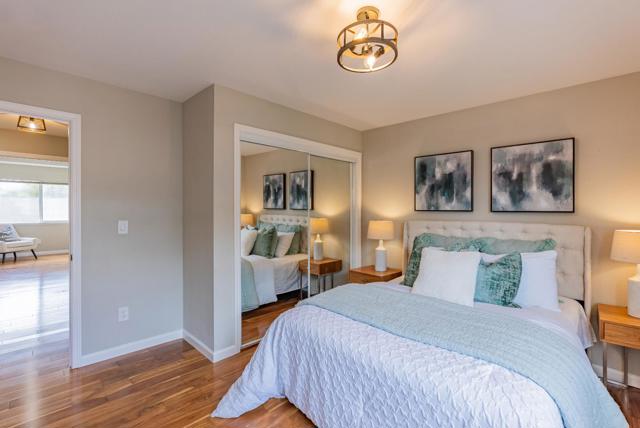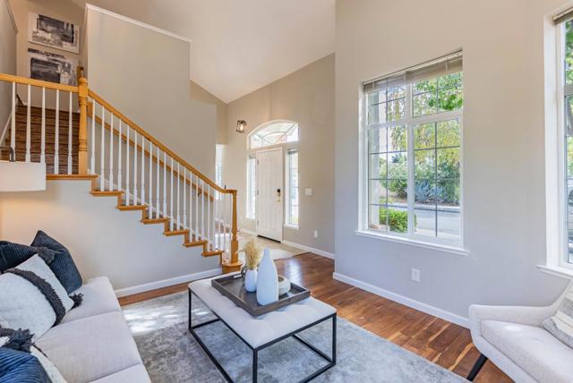 Towering 2-story stunner on a quiet corner lot just steps from Devonshire Park with its kids playground, this home combines comfort, style and convenience. Top-Rated schools are nearby and downtown Mountain View, with its lively farmers market, dining, shops and direct Caltrain/light rail connections, is only about 1.5 miles away. Inside, soaring ceilings, recessed lighting, dual-pane windows and a skylight fill the home with natural light, while warm laminate floors, central heat/AC and a cozy fireplace create an inviting atmosphere. The kitchen opens to the family room and serves as the heart of the home, showcasing high-end stainless steel appliances, quartz countertops with breakfast bar and a pantry. Upstairs, generously sized bedrooms each include their own closet, with the primary suite offering a private retreat featuring a large walk-in closet and spa-like bath with dual sinks and a stall shower. Additional highlights include an office nook overlooking the living room, a two-car garage with 240V EV charger and washer/dryer, as well as a private backyard ideal for entertaining or relaxing. Conveniently close to major tech campuses (Apple, Google, LinkedIn) and highways 85, 101 and 237, this home blends lifestyle, location and luxury. Do not miss this gem. It will go FAST!