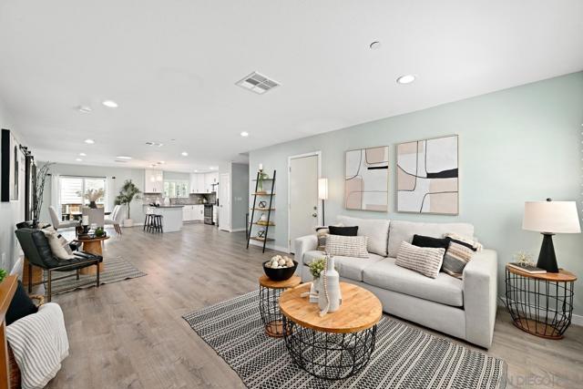 Beautiful newer construction, built in 2021, this home boasts a spacious open floor plan with wood laminate flooring throughout and elegant plantation shutters. Each bedroom is thoughtfully located in its own corner of the home, ensuring maximum privacy. Modern comforts include central heating and A/C, plus an attached 2-car garage with storage cabinets, a ceiling shelf, and electric car charging capabilities. The beautifully appointed kitchen showcases crisp white shaker-style cabinetry, a custom tile backsplash, quartz countertops, stainless steel appliances, and an island with breakfast counter seating. The spacious primary suite offers exterior patio access, ample closet space, and a private en-suite bathroom. The low-maintenance backyard features turf, stamped concrete, and a covered patio—perfect for outdoor entertaining—along with a storage shed for extra convenience. Additional highlights include RV parking and easy-care landscaping, combining functionality with style.
