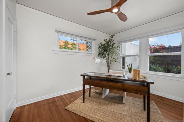 Turnkey Spanish Bungalow in the Heart of University Heights! Don’t miss this incredible opportunity to own a beautifully remodeled, move-in-ready home located in the highly desirable University Heights neighborhood—just steps from everything! This charming 2-bedroom, 1-bath Spanish Colonial Revival bungalow offers 886 sq ft of thoughtfully updated living space, full of natural light and timeless character. Features include: Newer kitchen with sleek stainless steel appliances. Newer roof and dual-pane windows with efficiency blinds to most windows/low energy bills. Gorgeous curb appeal with classic architectural details. Private backyard paradise . Enjoy the outdoors in the spacious, fully fenced backyard, perfect for entertaining, pets, or gardening. The property also includes off-street parking for multiple vehicles and a detached single-car garage.. Located on the historic Shirley Ann Place, this home may qualify for the Mills Act, offering significant property tax savings for eligible owners. Live in a true walker’s paradise—just minutes to cafes, restaurants, shops, grocery stores, Trolley Barn Park, Hillcrest Farmers Market, and all the vibrant culture of University Heights and North Park. Plus, enjoy easy access to major freeways, downtown, the beach, and the airport.