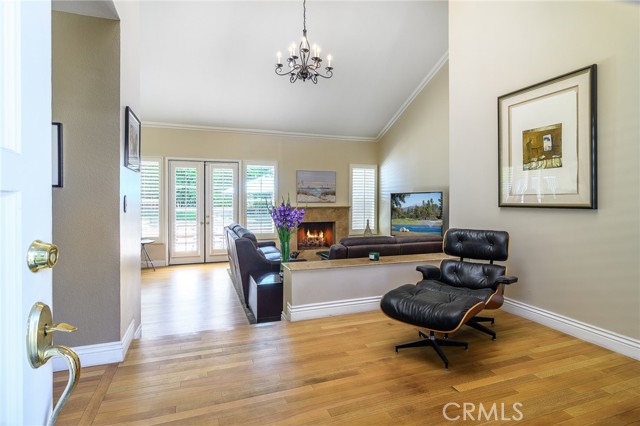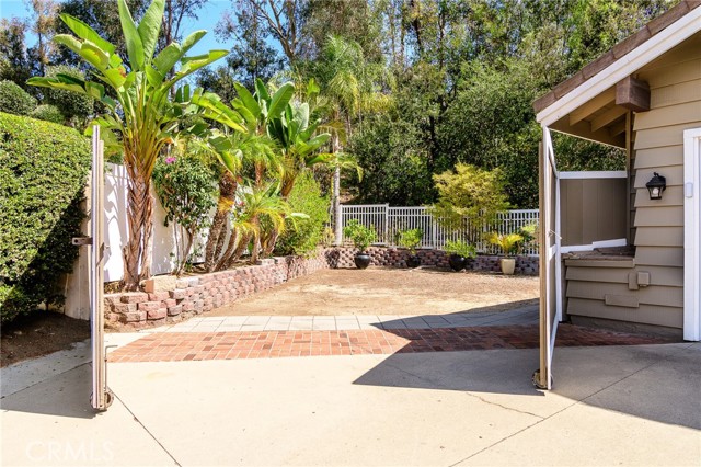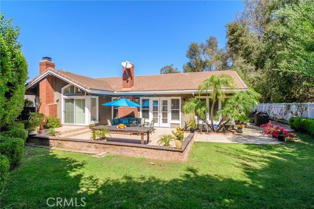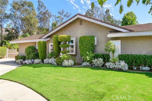 Charming home in gorgeous equestrian neighborhood. You will love coming home to this charming, upgraded single story in the desireable High Horse Trails equestrian community in Orange, California. It is perfectly situated, near a horse corral, at the end of a cul de sac and has curb appeal. Enter through a gated, lushly landscaped courtyard to a double door entry. Then step into a spacious open concept living room and dinng room, with tall ceilings, tons of natural light, a stone fireplace, beautiful hardwood floors and French doors leading to a large patio and grassy lawn. Perfect for entertaining. The adjoining kitchen has pretty courtyard views, and has been renovated with quartz countertops, custom tile backsplash and Bosch stainless appliances. It has a large dining area for casual family dining. A spacious primary suite offers all the amenitites of a luxurious retreat with sliding doors to the patio, a cozy fireplace, sitting area, large bathroom with double vanity and lots of closet space. This well designed house includes a two car garage with direct entry into the residence. A custom-built dog run keeps pets safe while providing optional access to the kitchen. There is also an inside laundry room. Close to shopping, Peter's Canyon trails, restaurants and coffee shops. Easy access to toll roads and freeways.