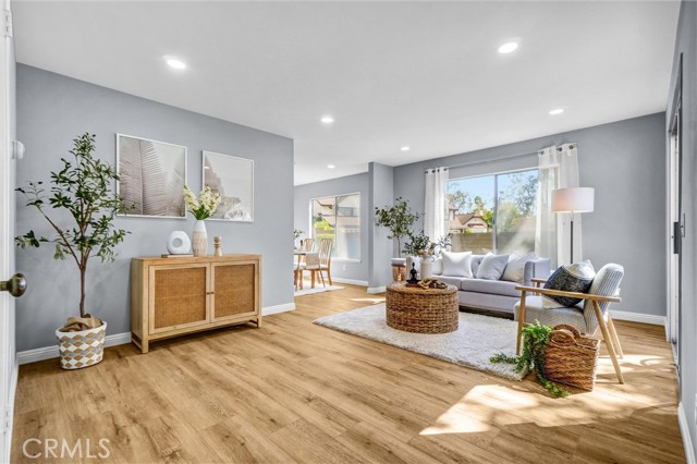 IDEAL FOR FIRST-TIME HOMEBUYERS OR SAVVY INVESTORS! Discover this charming end-unit condo located in the desirable The Bluffs at Coyote Hills community in Fullerton. Offering 3 bedrooms and 1.5 bathrooms, this home shares only one wall with one neighbor, providing added privacy and a peaceful setting among mature trees and nearby scenic trails. The interior has been recently updated with fresh paint, waterproof plank flooring throughout most areas, scraped ceilings, and recessed lighting. The well-appointed kitchen features granite countertops and white appliances. The inviting living room opens to a fully vinyl-fenced patio through a sliding glass door—perfect for enjoying morning coffee, entertaining, or relaxing with pets. Additional features include a washer and dryer that will remain with the home, direct access to a two-car garage, and ample guest parking nearby. Residents enjoy access to a beautifully maintained community that offers a pool, spa, basketball court, and playground. Situated within a highly rated school district—Sunset Lane Elementary, Parks Junior High, and Sonora High—and just minutes from Amerige Heights Shopping Center, Ralph Clark Regional Park, local markets, and premier golf courses. A fantastic opportunity to own in one of Fullerton’s most established and well-cared-for neighborhoods.