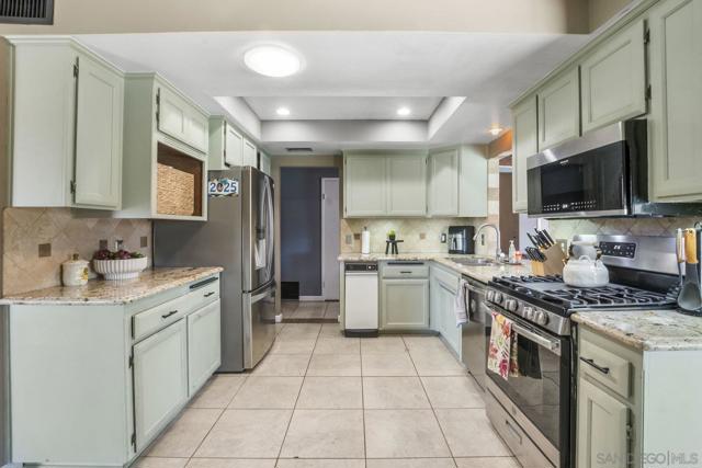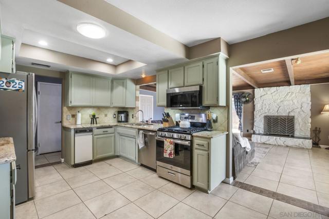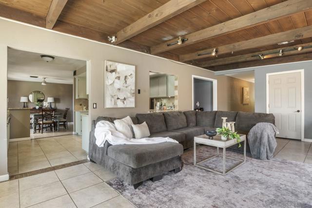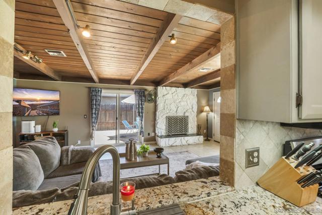 Discover comfort and convenience in this well-maintained 3-bedroom, 2-bath residence featuring a sparkling pool perfect for year-round enjoyment. This home combines thoughtful updates with classic charm in an unbeatable location. Expansive open kitchen with distinctive granite countertops, seamlessly connecting living spaces for effortless entertaining. The welcoming living room features dramatic open wood beam ceilings and a striking rock fireplace, creating the perfect gathering space. Refreshed bathrooms throughout add modern touches to this well-appointed home. Step outside to your private backyard with a refreshing pool and covered patio, ideal for relaxation and entertaining guests. The oversized second bedroom provides flexibility for guests, home office, or hobby space. Practical features include ceiling fans in every room, energy-efficient solar tube lighting, and quality Millgard doors and windows throughout. 2-car garage offers ample parking and storage with room to spare. Additional energy-saving features include a newer Lennox forced air heating system and complete insulation for year-round comfort. Perfectly positioned with convenient access to major freeways, schools and popular shopping destinations. This turnkey property offers the ideal combination of comfortable living and strategic location.