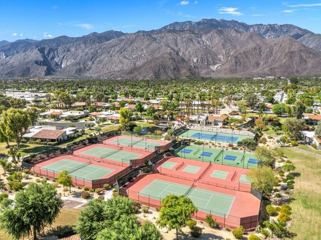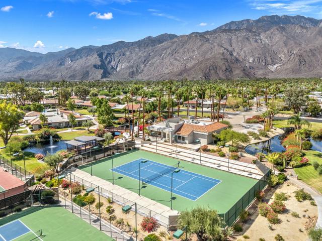 Rarely available 3-bedroom condo in the desirable central Palm Springs community of Sunrise Racquet Club, blending original architectural details with thoughtful updates. This home showcases one of the original model floor plans with its signature atrium, classic wet bar, and fireplace, while featuring modern enhancements. Some of the recent upgrades include fresh paint, brand new quartz bathroom counters, an upgraded fireplace, brand-new fans and fixtures, and a whole-house water softener. The spacious layout captures stunning mountain views from the kitchen and living room windows, creating a dramatic desert backdrop, while the private back patio is perfect for barbecues, relaxing, and entertaining. Residents enjoy resort-style amenities with 6 pools and spas, tennis courts, racquetball, and pickleball. An attached garage adds everyday convenience. The community's 14-day rental allowance provides excellent income potential, making this a rare opportunity for full-time living, a vacation retreat, or an investment property in the heart of Palm Springs. All of this in a very central location--just minutes to downtown, the casinos, restaurants, shopping, and nightlife.