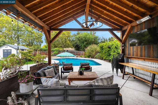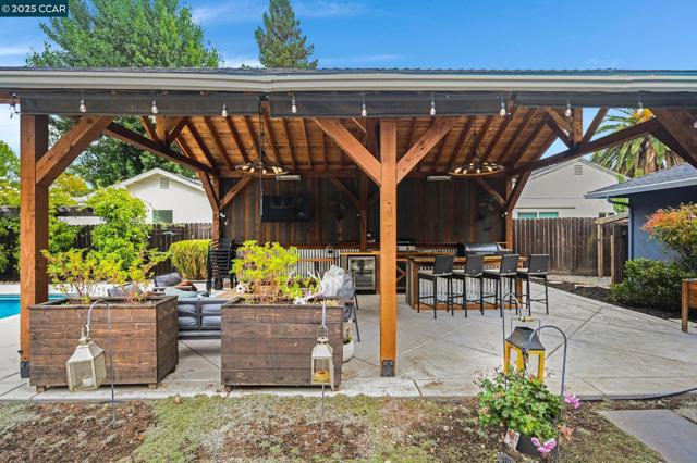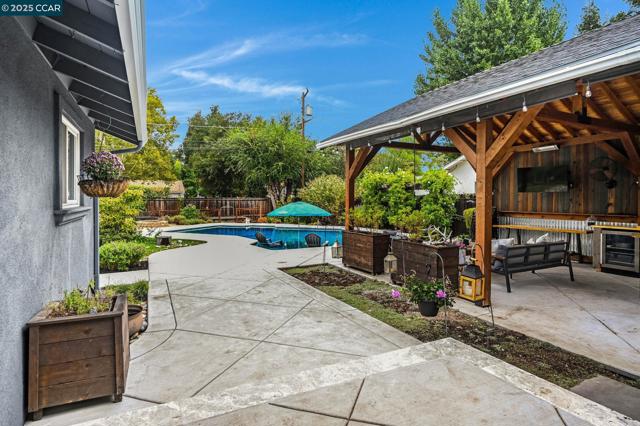 Welcome to this beautifully updated 4 bedroom, 2.5 bathroom home nestled in the heart of sought-after Poet's Corner. Step inside an inviting open concept kitchen featuring granite countertops and stainless steel appliances and plenty of space to entertain. Private primary suite offers a peaceful retreat with an ensuite, glass shower and jetted tub with a spacious walk-in closet. Outside, the backyard is truly a Showstopper! Designed for entertaining and relaxation, a Large Custom Covered Patio with a Vaulted open beam Ceiling. it boasts a sparkling saltwater pool, charming he/she shed with AC currently used as home office, a stylish chicken coop with run. Raised planter beds ready for your favorite veggies while the cozy fire pit sets the scene for memorable evenings and don't forget about the incredible outdoor kitchen and lounge area complete with room for a grill, plumbed for sink, fans and plenty of counter space, perfect for hosting under the stars. This home checks all the boxes. Don't miss the chance to own a piece of Poet's Corner charm!