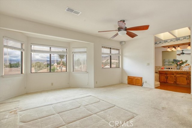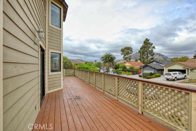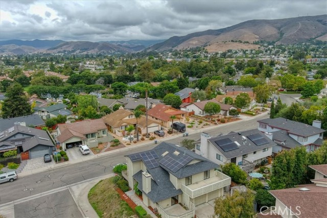 Outstanding location for this 3-bedroom home nestled against the South Hills Open Space. The spacious corner lot is at the entrance to a cul-de-sac and offers privacy and beautiful views of Cerro San Luis. The large floor plan has the main living areas on the entry level with all bedrooms upstairs. The kitchen has stainless steel appliances, a breakfast bar, and is open to the family room. Easy access to the front and side yard decks from the family room, which is located just off the kitchen. The formal dining has a wine fridge, built-in cabinetry, and easy access through a sliding glass door to the front deck. A separate living room features a wood-burning fireplace and access to a private back patio, offering multiple spaces for relaxation or entertaining. The laundry room has storage cabinets and a laundry sink. Upstairs, there is a large common area with a wet bar and amazing views. This area could be used as an office, den/library, exercise room, or even a potential fourth bedroom. The oversized primary room has amazing views with a walk-in closet. The primary bathroom has a large soaker tub with dual vanities. The remaining two bedrooms each have a sliding glass door out to a private balcony with views of the South Hills Open Space. Other features include owned solar panels and air conditioning.