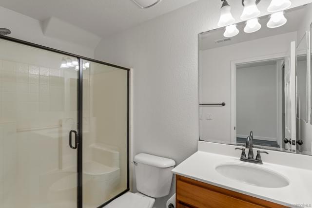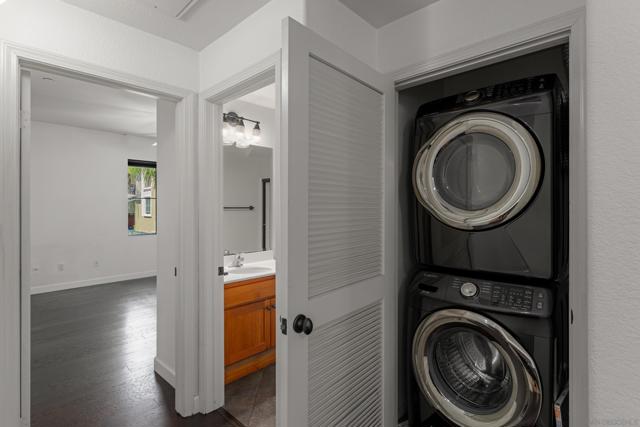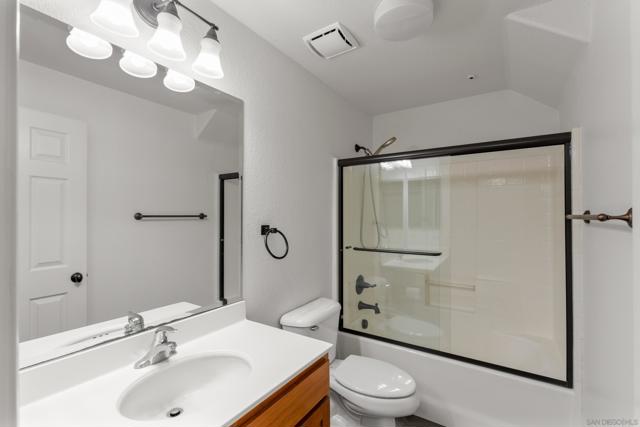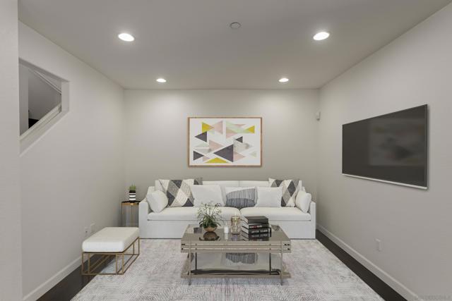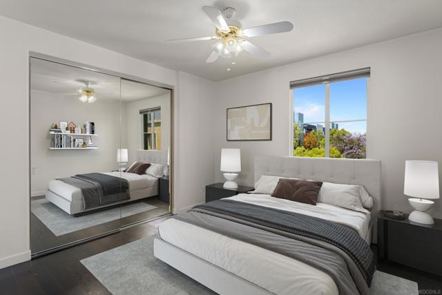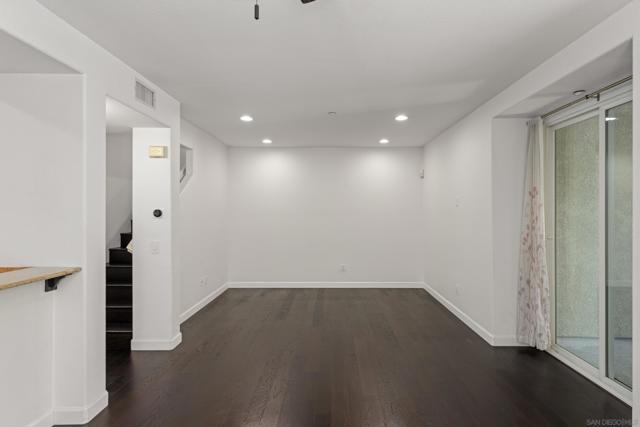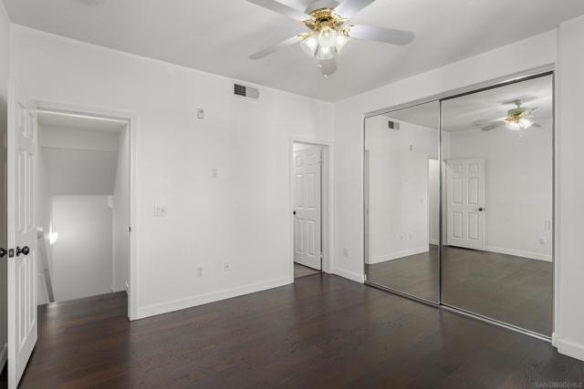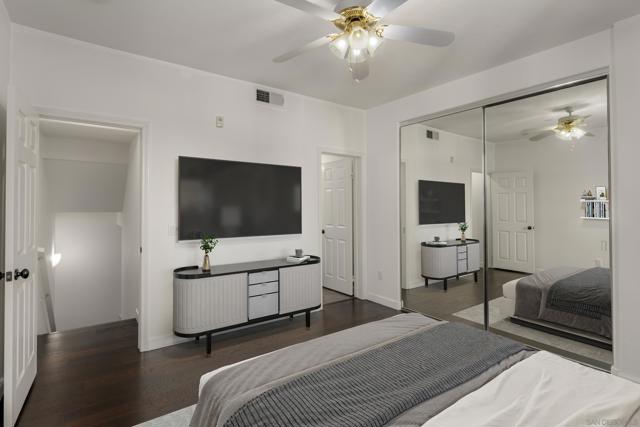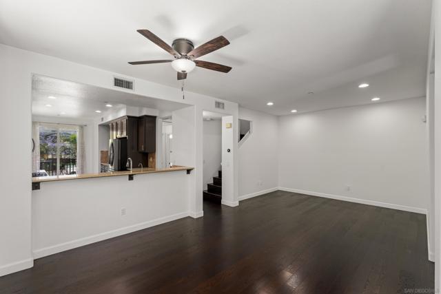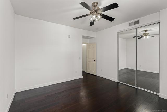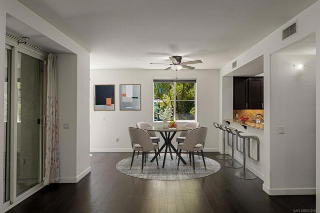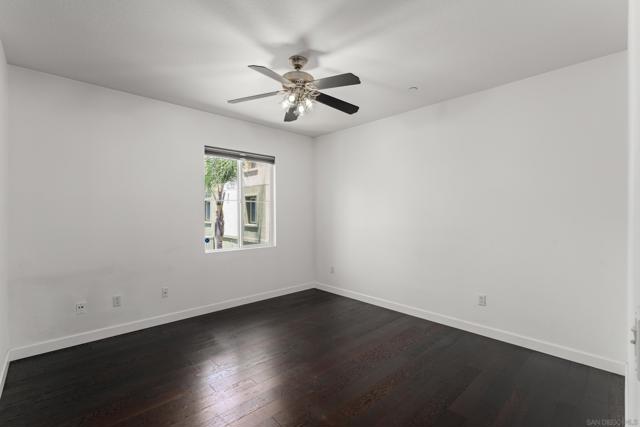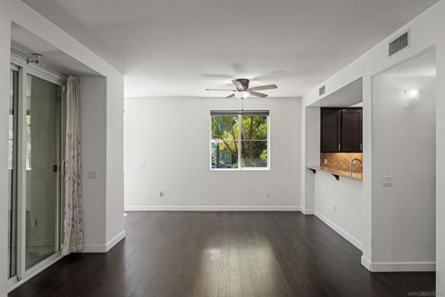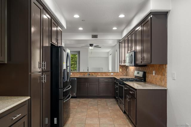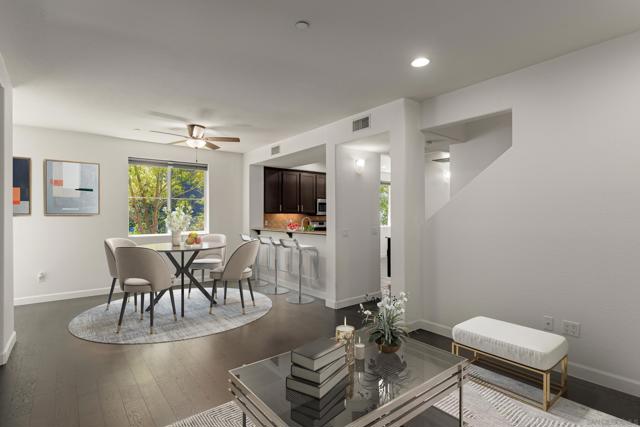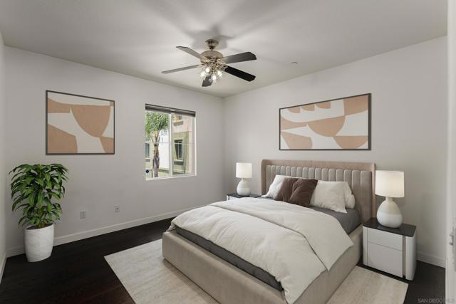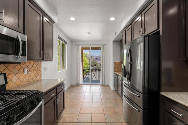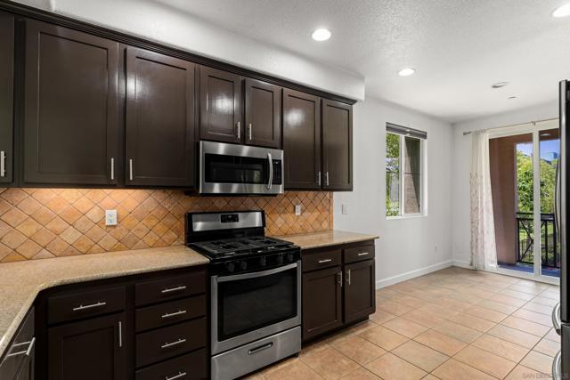 FHA/VA Approved! Bright, welcoming, and ideally located, this end-unit townhome in the Tribeca community offers a smart layout and everyday comfort in the heart of Kearny Mesa. Set on a quiet street lined with palm trees and just steps from a local park, the home blends modern convenience with easy access to shopping, dining, major freeways, and everyday essentials. Inside, you’ll find a thoughtfully well-maintained space featuring hardwood flooring, dual-pane windows w/ custom window treatments, and recessed lighting throughout. The open-concept kitchen is both functional and inviting, with stainless steel appliances, granite countertops, a stylish tile backsplash & ample cabinet and counter space. A breakfast bar adds flexibility for casual meals or entertaining. The main level features two private balconies with no direct neighbors, offering added privacy and a peaceful setting for morning coffee or evening relaxation. The layout flows smoothly into the living and dining areas, with a guest bedroom and full bathroom just down the hall. Custom designed closets with added storage in each bedroom enhance both style and organization. An in-unit washer and dryer complete the convenience of the second floor. Upstairs, the primary suite occupies the entire floor, offering a private retreat with an ensuite bathroom. Amenities include a two-car tandem garage with built-in cabinets & workspace and forced a/c, while the community provides pool, spa, and BBQ areas. Take advantage of this rare opportunity to own in one of San Diego’s most convenient and well-connected neighborhoods.