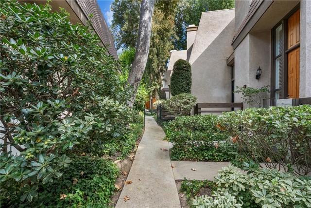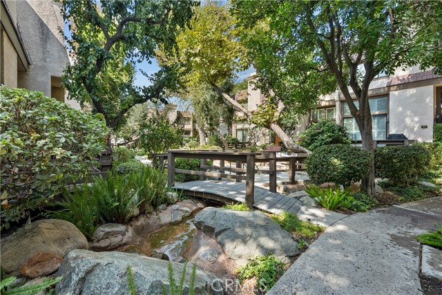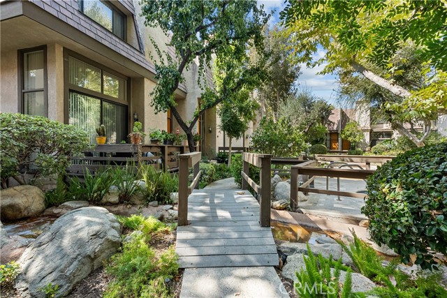 Tucked into a peaceful community where winding streams and mature landscaping create a storybook backdrop, this immaculate tri-level townhome is a rare opportunity, Offered for the first time in almost 40 years, it's more than a home it's a lifestyle of comfort, connection and tranquility. From the front porch, you'll be greeted with a spacious 1,458 sqft floor plan with a dramatic living room featuring a floor to ceiling slider and windows, where natural light streams in and frames views of the garden like grounds. The kitchen and eat in dine is both cozy and functional for everyday meals and the adjoining formal dine is ideal for hosting, celebrating or sharing Sunday dinners. Its a home that easily transitions from quiet moments to lively gatherings. Upstairs you'll find two expansive bedrooms with their own private ensuite bath - providing the ultimate in privacy. Upgraded and Updated features include shutters, recessed lighting, ceiling fans, newer carpet, A/C and water heater. Attached 2 car garage with direct access housing your laundry area and water heater. Conveniently located near CSUN, shopping and public transportation.