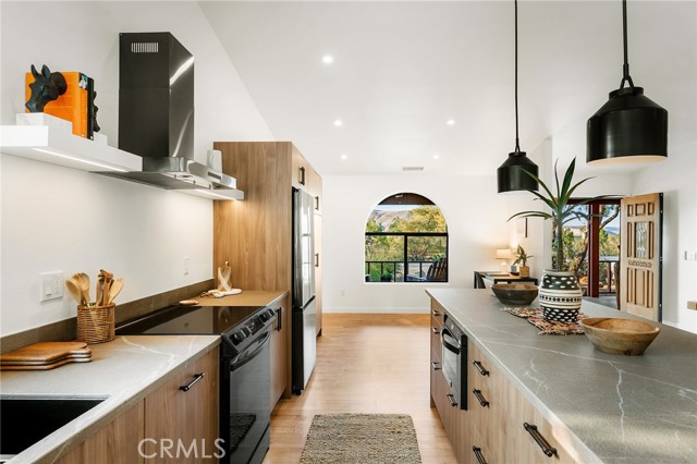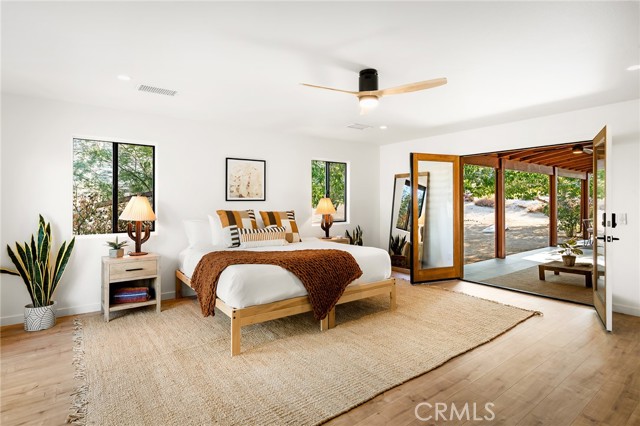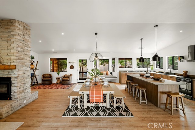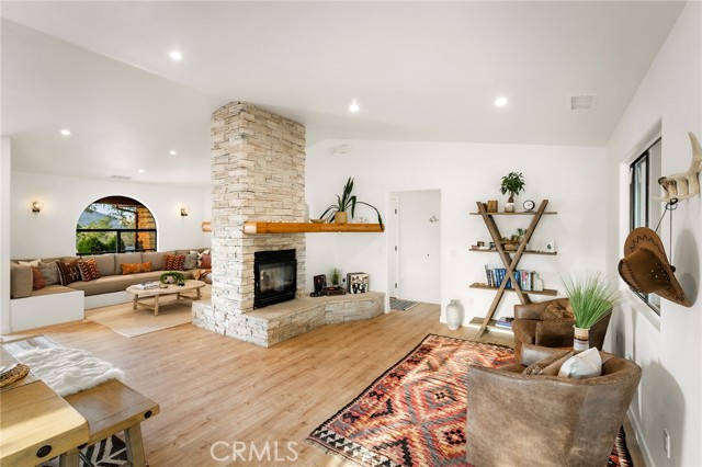 Set just one block from Pappy & Harriet’s and the Red Dog Saloon, Crystal Cowgirl Ranch offers a 2.11-acre retreat at the cultural heart of Pioneertown. Surrounded by ancient boulders, lava buttes, and 360° mountain vistas, the setting delivers a rare mix of natural drama and privacy. At 4,000 ft elevation, summers are cooler, winters bring light snow that transforms the land into something magical. Minutes from Joshua Tree National Park, the Sand to Snow Monument, and Yucca Valley, the ranch combines world-class location with tranquil desert living. Inside, be the first to experience this brand-new remodel — no one has stayed overnight since completion. The reimagined 2,698 sq. ft. home (3 bedrooms, 3 bathrooms, plus studio/garage) is a showcase of modern western design, created by renowned Austrian architect Wolfgang Pichler Design. Bathrooms are sculpted in microcement with European fixtures, while the chef’s kitchen flows into the living and dining spaces, anchored by a dramatic double-sided fireplace. The extra-large primary suite offers a private patio and seamless indoor/outdoor bathroom, delivering spa-like comfort framed by desert views. Outdoors, abundant Joshua Trees, mature gardens, and fruit-bearing fig, pomegranate, and mulberry trees create a lush oasis against the desert backdrop. Amenities include multiple fire pits, two outdoor showers, a hot tub, BBQ, and shaded dining zones, with room to add a pool, pickleball court, or equestrian facilities. Zoned SD-RES, it’s ideal for horses or donkeys. The converted garage doubles as a versatile studio space for creative work or guest overflow. The property comes partially furnished, with a fully stocked kitchen, towels, and linens, making it STR-ready from day one. Curated pieces from Rejuvenation, Arhaus, and Pottery Barn, plus Starlink internet and new HVAC, complete the package. A true lifestyle and investment opportunity, the sale also includes Crystal Cowgirl Ranch’s intellectual property — name, logo, photos, website, and Instagram — providing instant branding power for STR success. Crystal Cowgirl Ranch isn’t just a home — it’s a destination, blending architectural artistry, iconic location, and turnkey luxury.