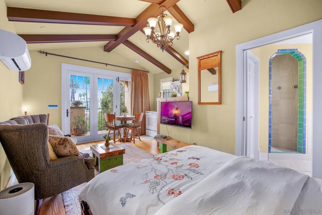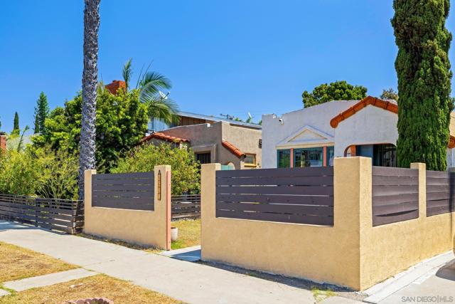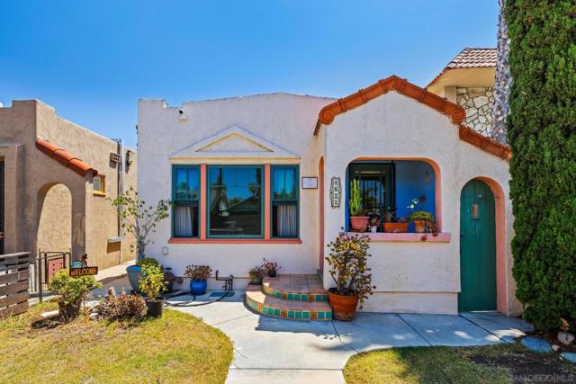 This exceptional property presents a rare investment opportunity in one of San Diego's most desirable neighborhoods. The property combines a beautifully remodeled Spanish-style 2-bedroom, 2-bathroom home with two fully furnished, remodeled studios. The main house is charming Spanish-style home with timeless craftsmanship and Mediterranean features. It boasts beautiful Italian hardwood floors, a remodeled kitchen with Italian tile backsplash and custom wood cabinetry, beamed ceilings, and new Pella windows. One studio is located above the garage and features a cantina door opening to an outdoor balcony, as well as a wet bar, refrigerator, and built-in Murphy bed. The bottom studio is a converted garage and has similar amenities. The property features mature landscaping, fruit trees (lemon, fig, pomegranate, passion fruit), and Spanish outdoor tile and new fencing for privacy and peaceful relaxation. Fully permitted plans are in place to add a second-floor ADU (Accessory Dwelling Unit) with a separate address, ready for immediate construction. Live in one unit, rent out the others, and maximize your income by adding the planned ADU. Just steps from Trolley Barn Park, cafes, restaurants, shopping and nightlife. Close to freeway access, 5-minute drive to Balboa Park and Downtown San Diego, this property has it all.