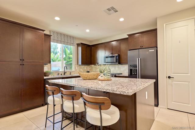 Behind the gates of Pacific Ridge, 1228 Via Candelas is full of modern luxury and attention to detail. Built in 2018 as the builder’s model with every upgrade they could think of, the home wasn’t sold and lived in until 2021. Over that brief time, it was lovingly cared for and gently used, as evidenced by its immaculate condition. Full of high-end finishes, elegance shines through at every turn. Completely move in ready, the newly upgraded carpets, custom window treatments, and artful wall features are... more in supplement ...sure to catch the eye. Imagine sipping coffee on a balcony with panoramic views, or gathering by the backyard’s flickering fireplace surrounded by beautiful landscaping and a soothing water feature. Inside, custom built-ins fill the loft, master suite, and spa-like bathroom, while a Tesla-backed solar system and whole-house water filtration offer sustainable comfort. Complete with integrated speakers in the living room, loft, and bedroom, this barely-lived-in masterpiece invites you to write its next chapter.