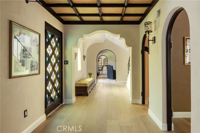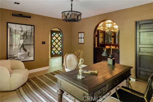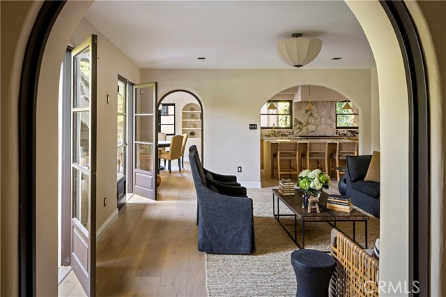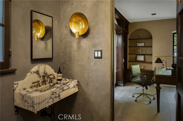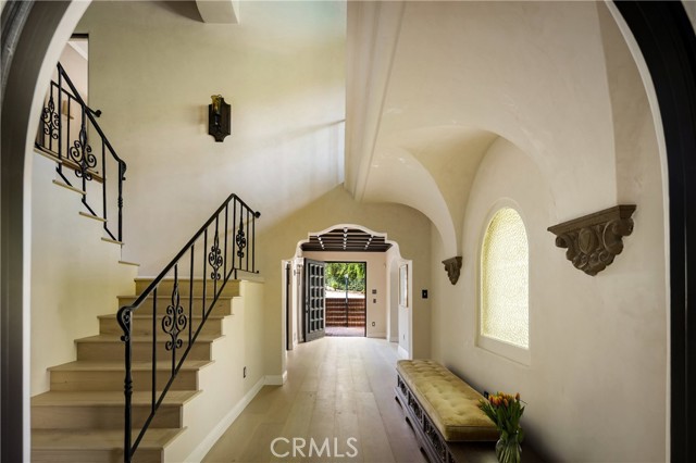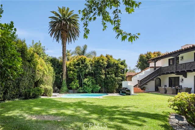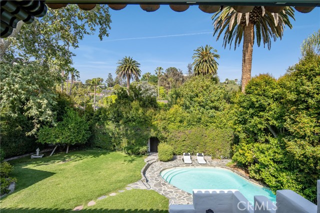 Welcome to a once-in-a-generation opportunity to own one of Hollywood's most iconic estates. Nestled in coveted Outpost Estates, this 1929 Spanish Colonial Revival masterpiece was the longtime residence of legendary host Bob Barker. Restored and reimagined by acclaimed designer Julia Dempster, it embodies the romance of Old Hollywood with the sophistication of contemporary luxury. Built atop the site of "The Outpost," the adobe home that marked Hollywood’s birth, this landmark is Los Angeles Historic-Cultural Monument No. 673. With a provenance as rich as its design, 1851 Outpost Drive is more than a home; it is a chapter of Los Angeles history. The estate features six spacious bedrooms, six baths, and a powder room. A 601 sqft basement includes a sauna and two additional rooms ideal for guests, office, or gym. A stylish home office with en-suite bath doubles as a guest suite or studio. Original details have been preserved, from the fresco ceiling and arched doorways to stained-glass windows and the iconic bar in the wood-paneled library. The dramatic fireplace and sweeping interiors evoke Hollywood grandeur. Dempster’s restoration brings natural textures and warmth, with Roman clay and limewash finishes enhancing the light. The chef's kitchen is a masterclass in form and function, with custom oak cabinetry, Thermador appliances, and breathtaking Viola Monet marble. The home offers two primary suites: the main with dream walk-in closet and his-and-hers baths, and a second with dual closets for guests or family. Bathrooms showcase book-matched travertine showers and marble thresholds. European oak floors run seamlessly, while hand-selected Zia tiles add character to the secondary baths. An infrared sauna offers a serene wellness retreat. Outside, the grounds feel like a private resort: pool, expansive lawn, and a towering oak tree create a sanctuary just moments from Runyon Canyon, the Sunset Strip, and the pulse of Hollywood. With its location, history, and world-class design, 1851 Outpost Drive is not simply a residence; it is a legacy awaiting its next custodian.