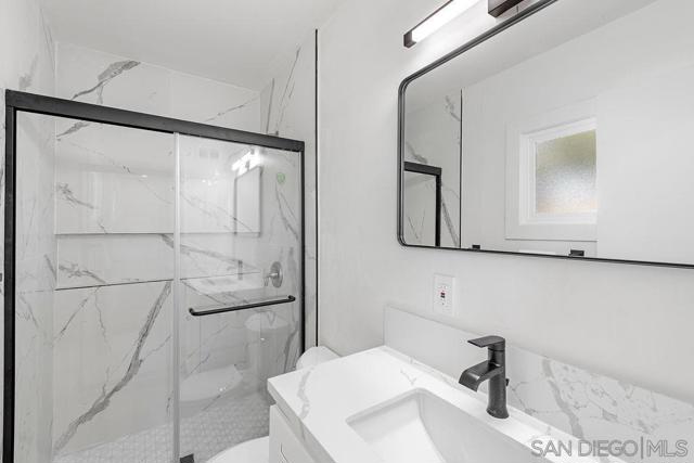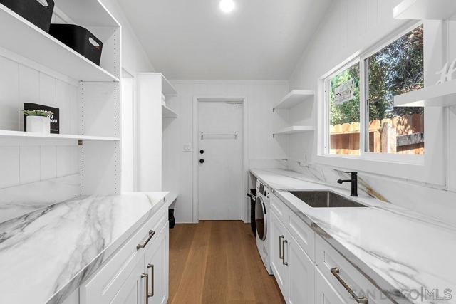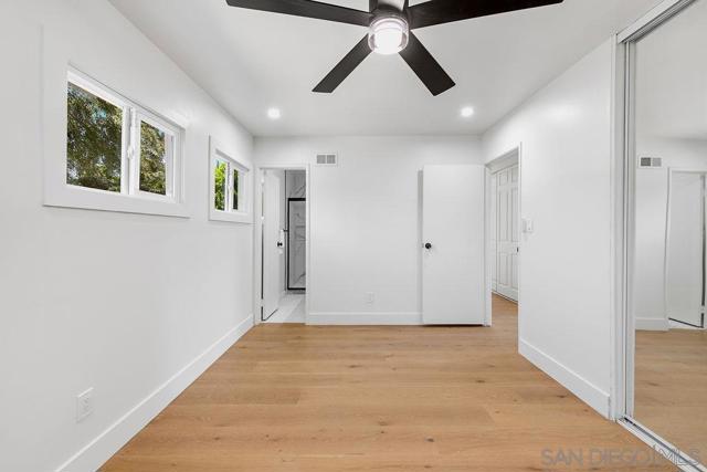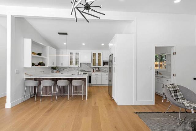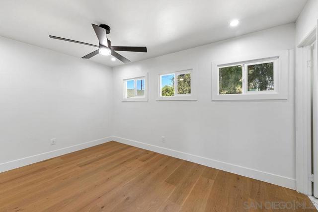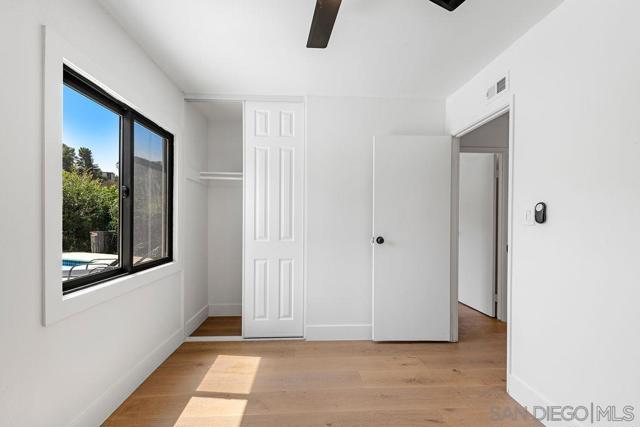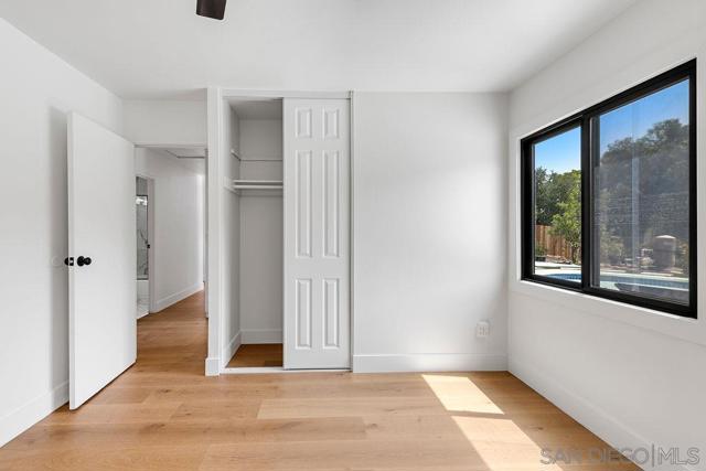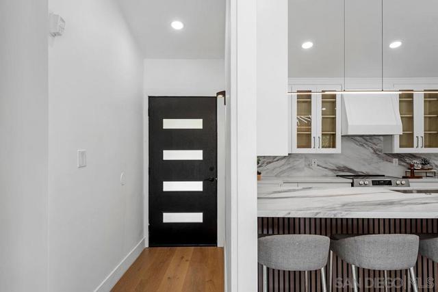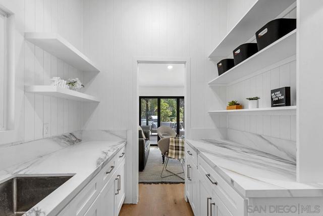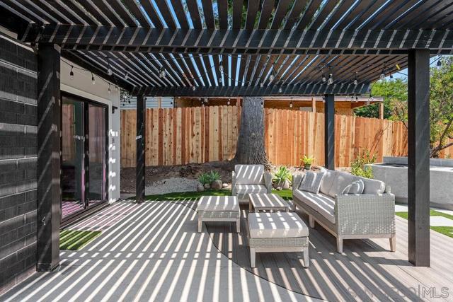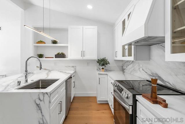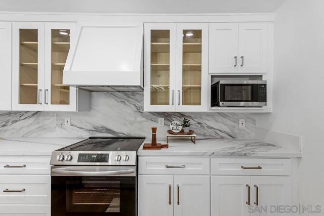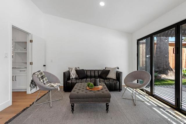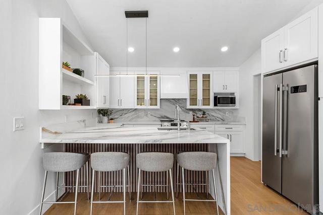 This thoughtfully updated 3-bedroom, 2-bath residence in the heart of Clairemont has been completely reimagined with high-end upgrades, modern finishes, and custom craftsmanship. Ideally located near Mesa College, it offers the perfect balance of style, comfort, and convenience. The spacious open-concept kitchen and living area extend effortlessly to the outdoors through dramatic accordion-style glass doors, capturing the essence of Southern California indoor-outdoor living. The chef’s kitchen showcases quartz countertops, a large island, premium stainless steel appliances and custom cabinetry. A bright, inviting living room with a cozy wood-burning fireplace provides the ideal space for both relaxation and entertaining. Elegant engineered wood flooring, a brand-new washer and dryer, and central air add to the home’s comfort and appeal. Step outside to a private backyard retreat featuring a sparkling pool and spa, an outdoor dining pavilion with built-in BBQ, lush landscaping with mature fruit trees, and sweeping canyon views. A spacious covered patio and energy-efficient solar system complete this exceptional property.