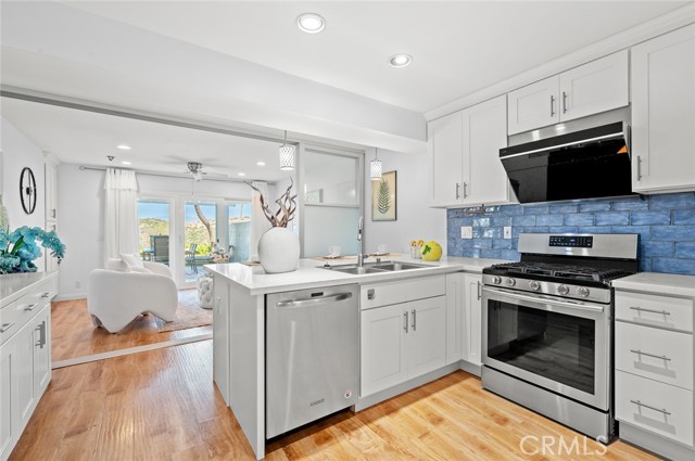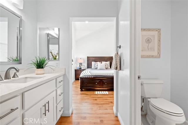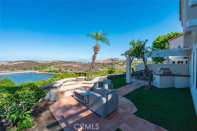 Enjoy breathtaking golf course and lake VIEWS from this stunning townhome located on a rare, oversized lot in the exclusive, GATED Turtle Rock Pointe community in Irvine. warm, wide-planked laminate wood floors, plantation shutters, vaulted ceilings, recessed lighting. bright and open floorplan. Enter into the inviting living room with large, light-catching windows that seamlessly flows to the formal dining room. The adjacent upgraded kitchen is well-appointed with fresh white cabinets, quartz counters, tile backsplash and breakfast bar. The kitchen opens to the family room featuring built-in cabinets and sliding doors to the backyard. A main floor bedroom offers convenience and privacy for guests and is adjacent to the remodeled full downstairs bathroom. Upstairs, the master suite boasts soaring ceilings, a walk-in closet and a remodeled en-suite master bathroom with dual vanities, luxurious soaking tub and walk-in shower. Down the hall, a second master suite features a remodeled en-suite full bathroom with a walk-in shower. Relax in the serene backyard featuring a built-in BBQ and panoramic views of the golf course and lake. Located just minutes to hiking and biking trails, award-winning Irvine schools, John Wayne Airport, and upscale shopping & dining options.