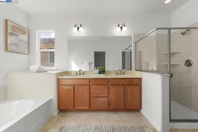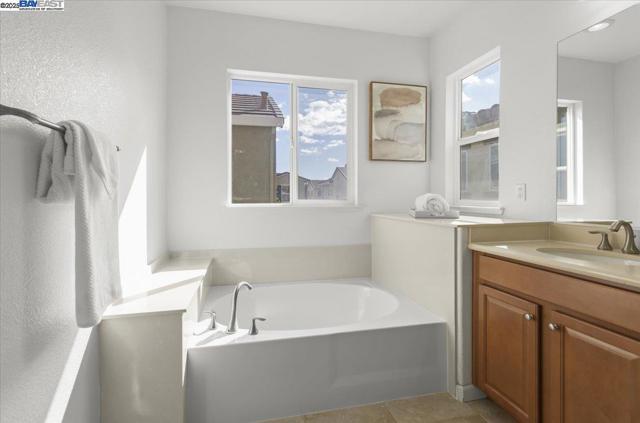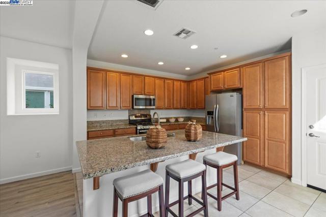 Discover modern comfort at 369 W Tuscan Ln in Mountain House! This desirable two-story North Facing home, built in 2014, offers 4 bedrooms and 3 full bathrooms across 2,191 sq ft of stylish living space. The interior has been refreshed with new paint throughout, creating a bright, move-in-ready feel. The kitchen is a chef's dream, featuring a large granite island and a suite of stainless steel appliances. For comfort, the home includes a cozy fireplace and central air conditioning. The master suite is a private retreat with a dedicated walk-in closet. The property sits on a low-maintenance 3,700 sq ft lot within a peaceful, family-friendly community. Property also comes with owned solar. Its prime location provides easy access to top-rated schools, including Sebastian Questa Elementary and Mountain House High School, making it an ideal choice for families.